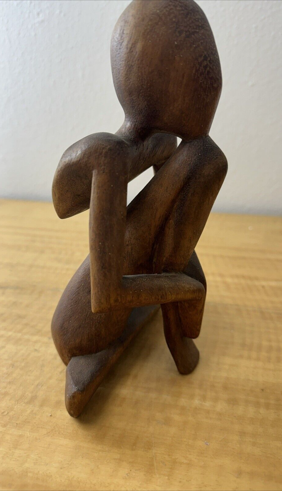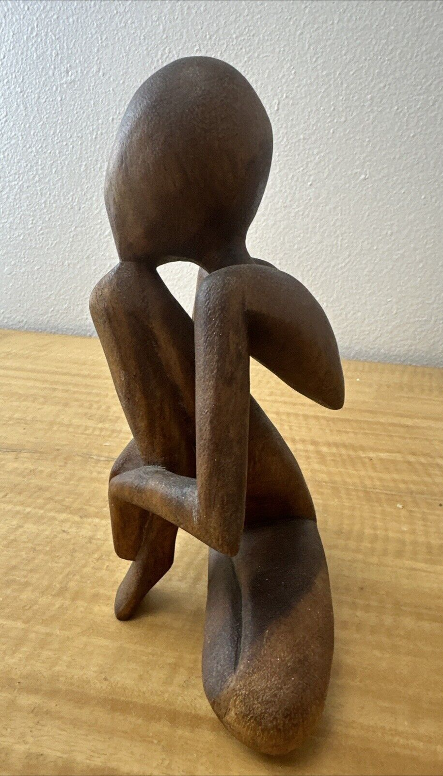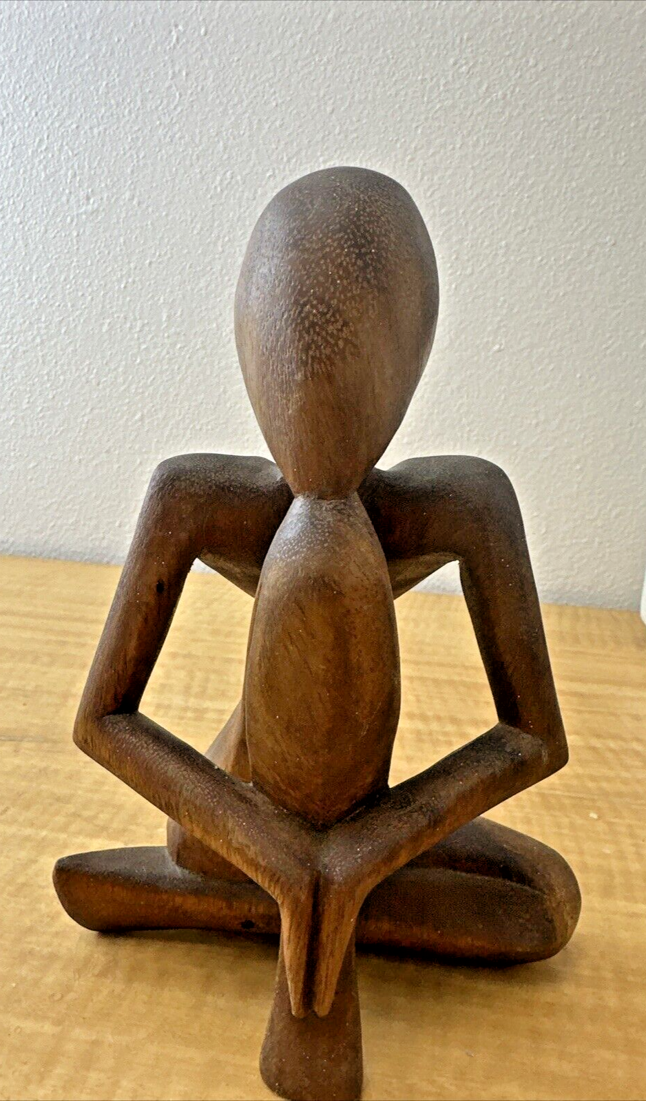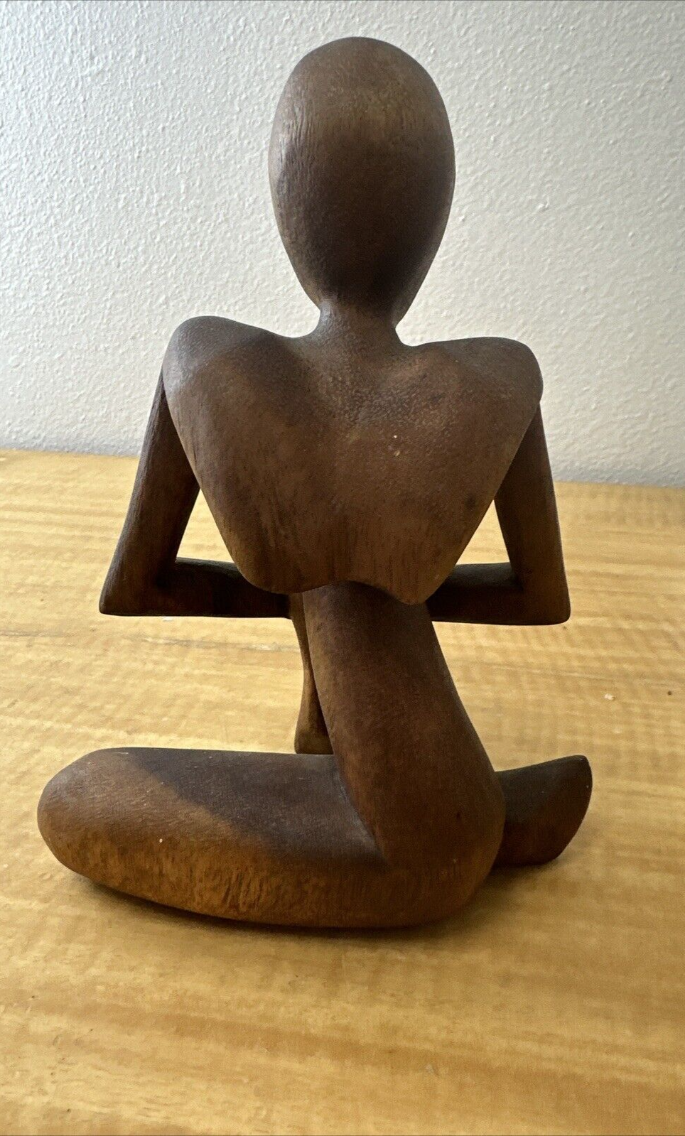 Hand Carved Bali Saur Wood Abstract Human Figure Art Sculpture Sitting Yoga