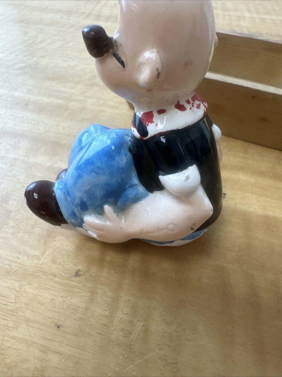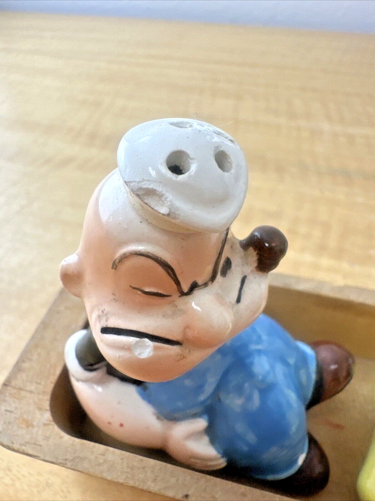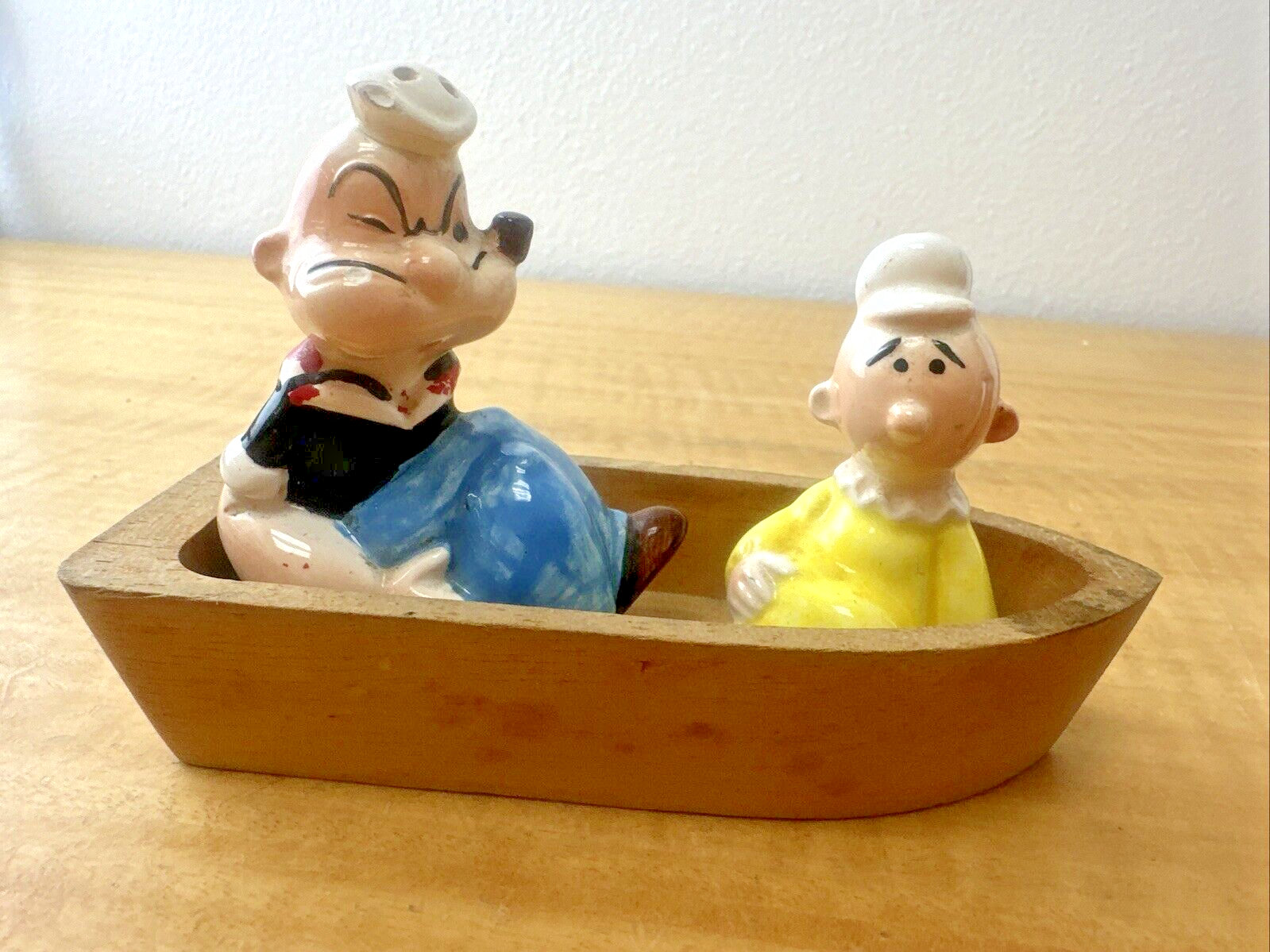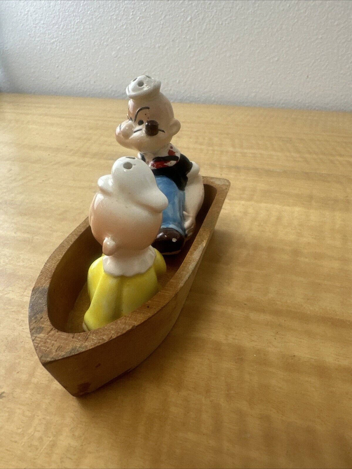 Popeye and Sweetpea In Wood Boat Salt and Pepper Shakers Ceramic