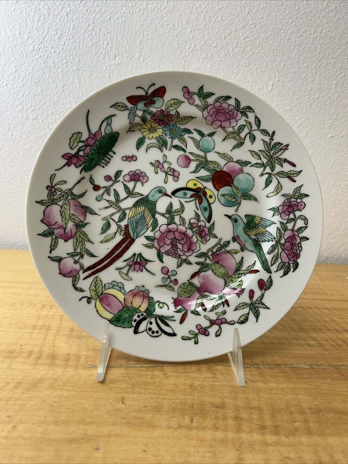 Floral Pattern Plates W/birds, Butterflies & Fruit UNMARKED