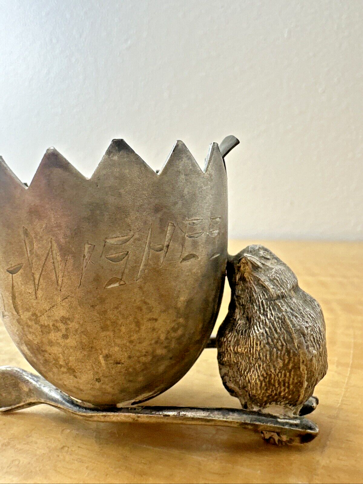 Antique Barbour Silver Co. Toothpick/Salt Holder Bird & Egg