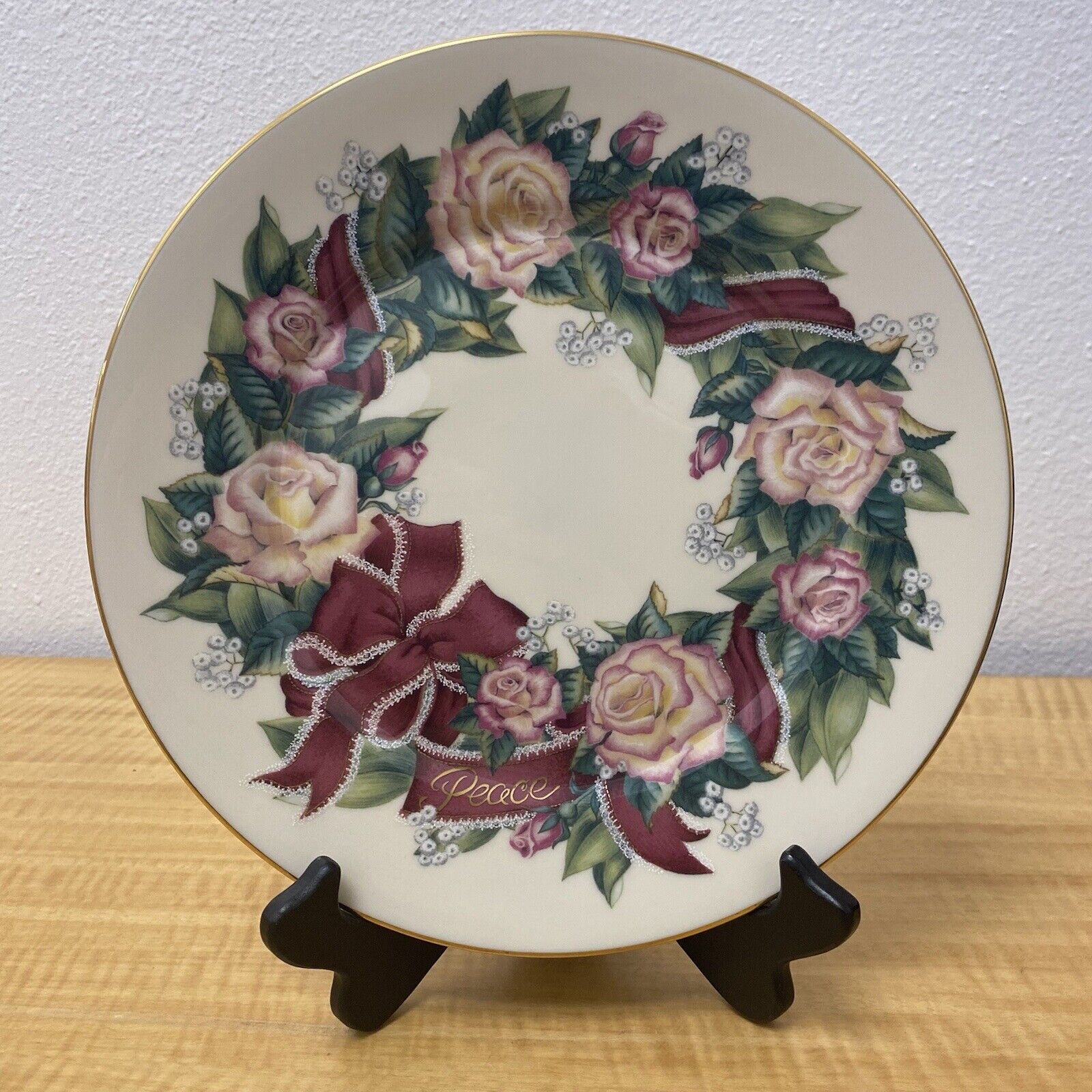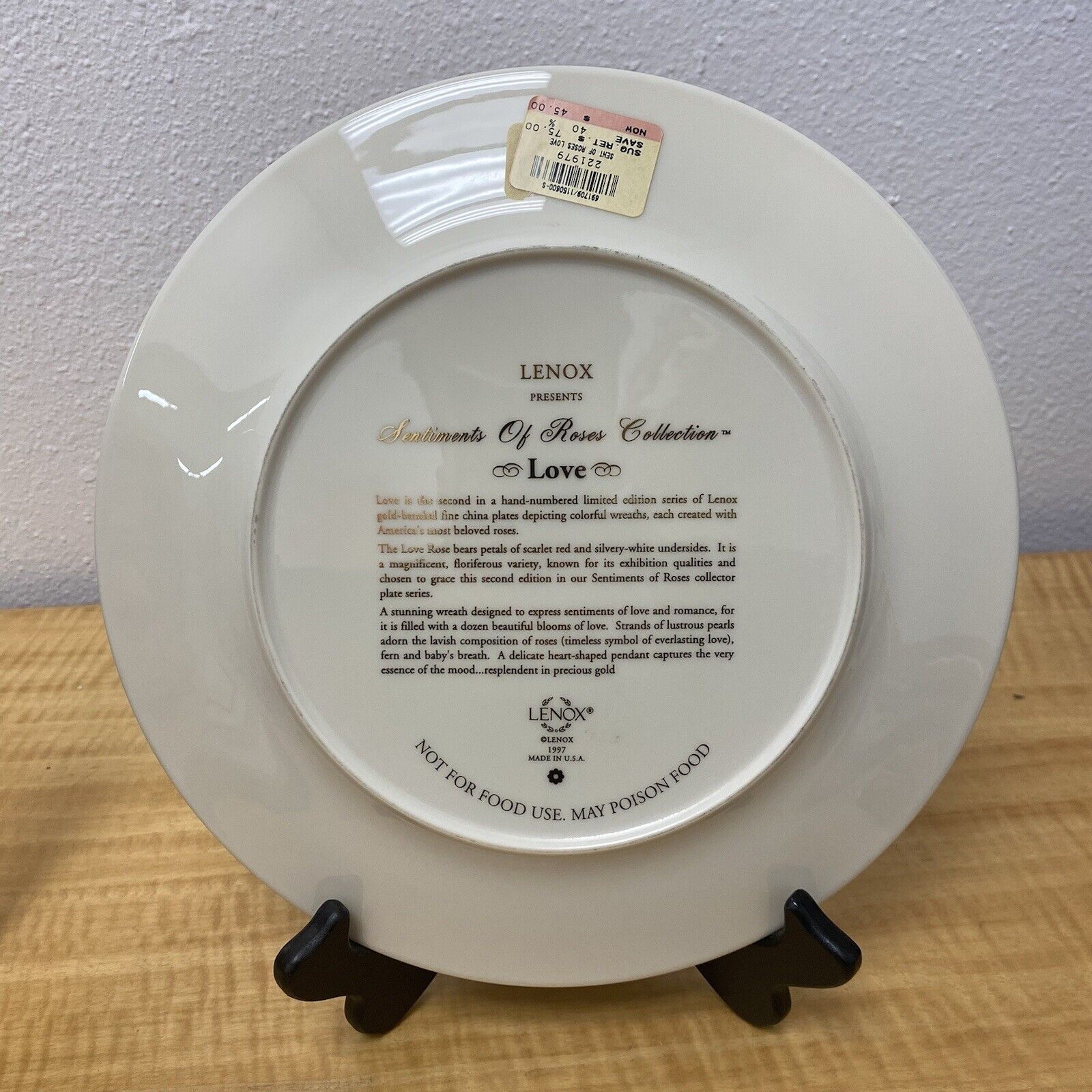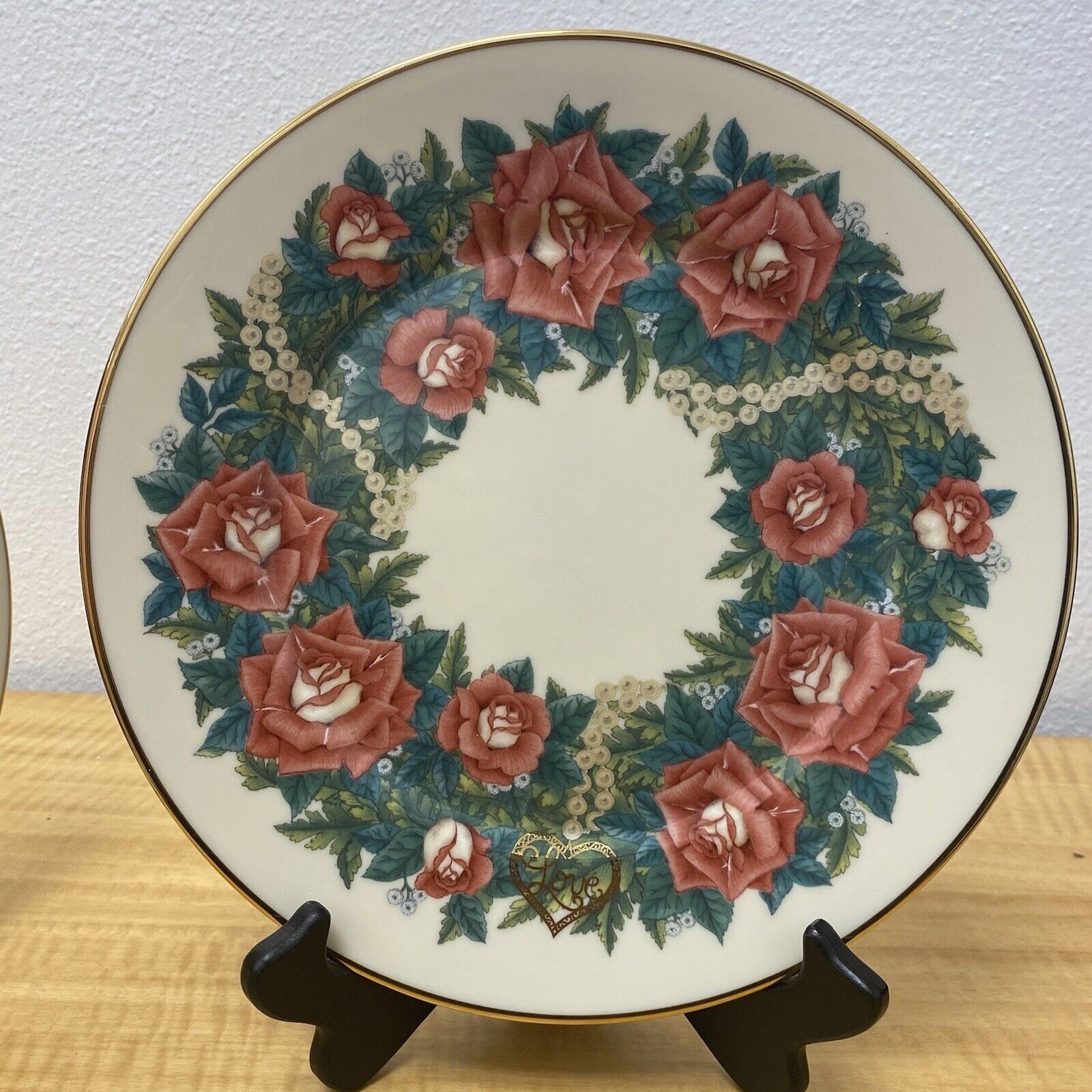 2 Lenox Sentiments of Roses Collection Plates - 1996 1997 Peace Love