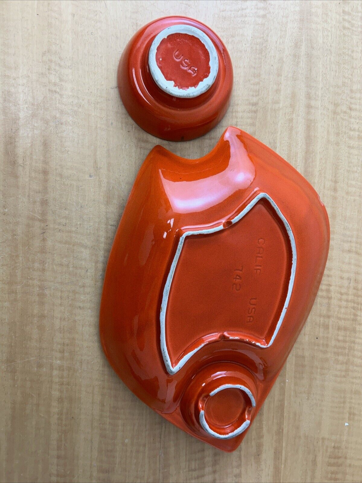 MCM California Pottery Chip and Dip Serving Set USA 742 Multi-color