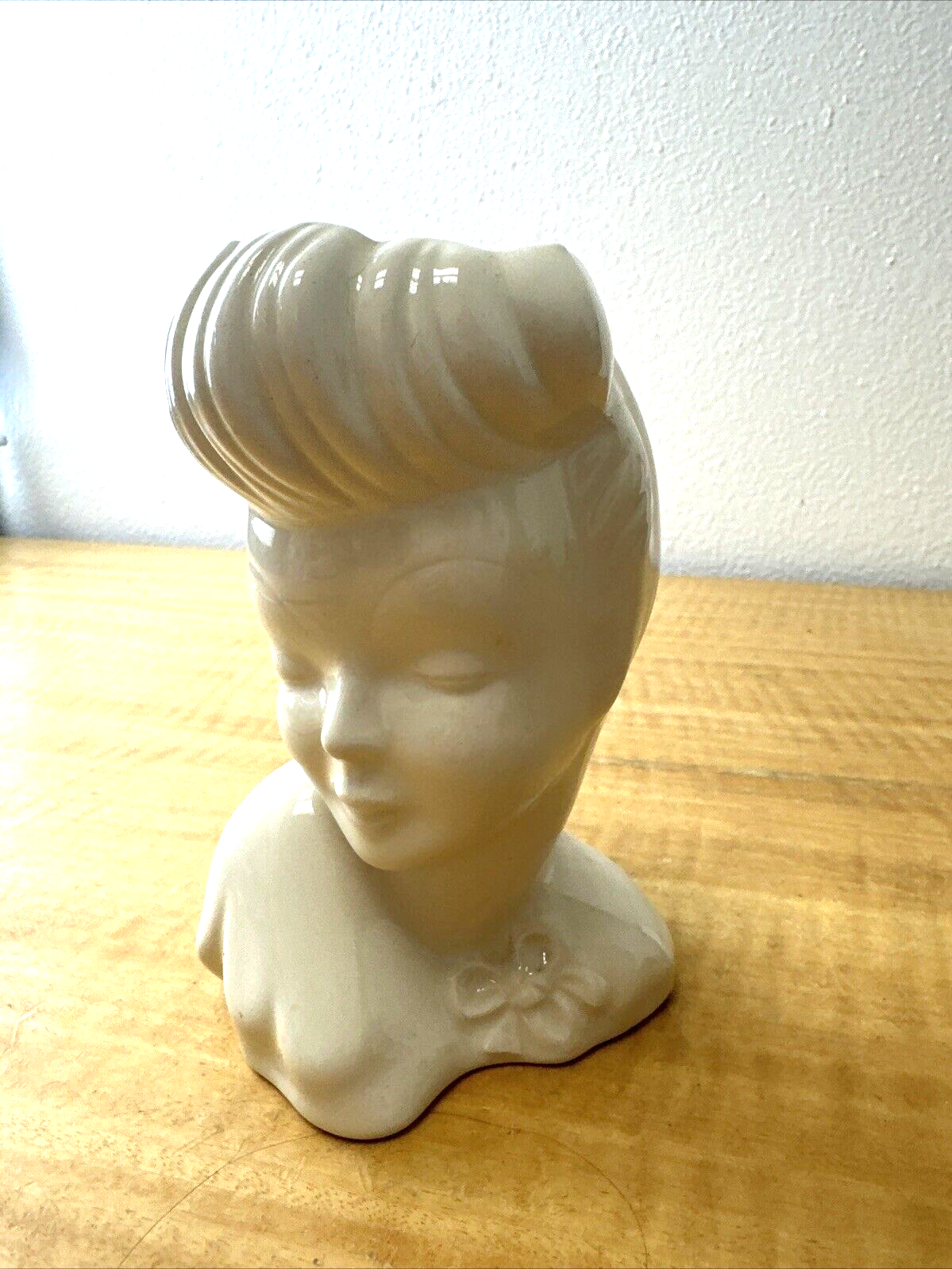 VINTAGE BETTY GRABLE LADY HEAD VASE 6” WHITE GLAMOUR GIRL