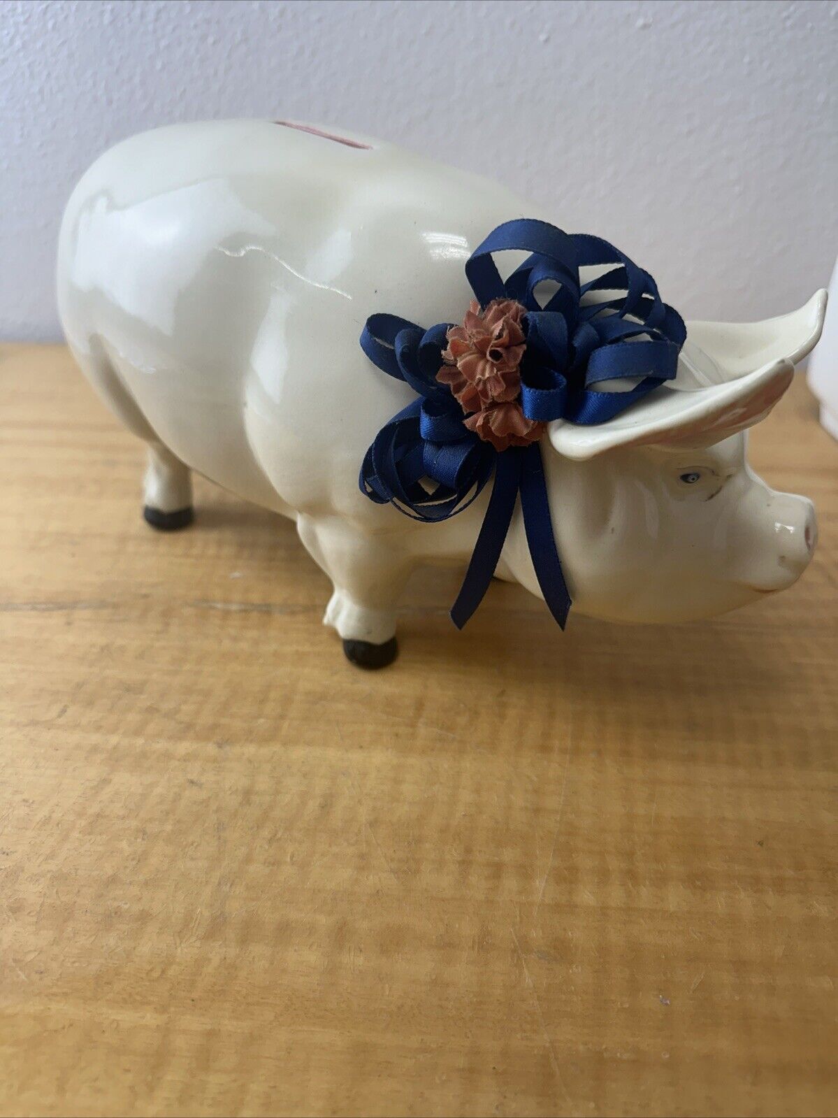 Piggy Bank Lovely Pink Color With Flowers And Hand Painted Details
