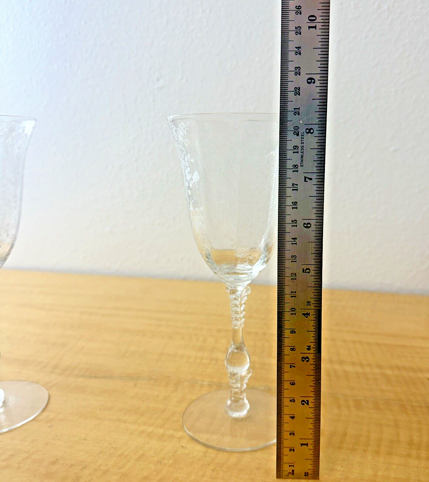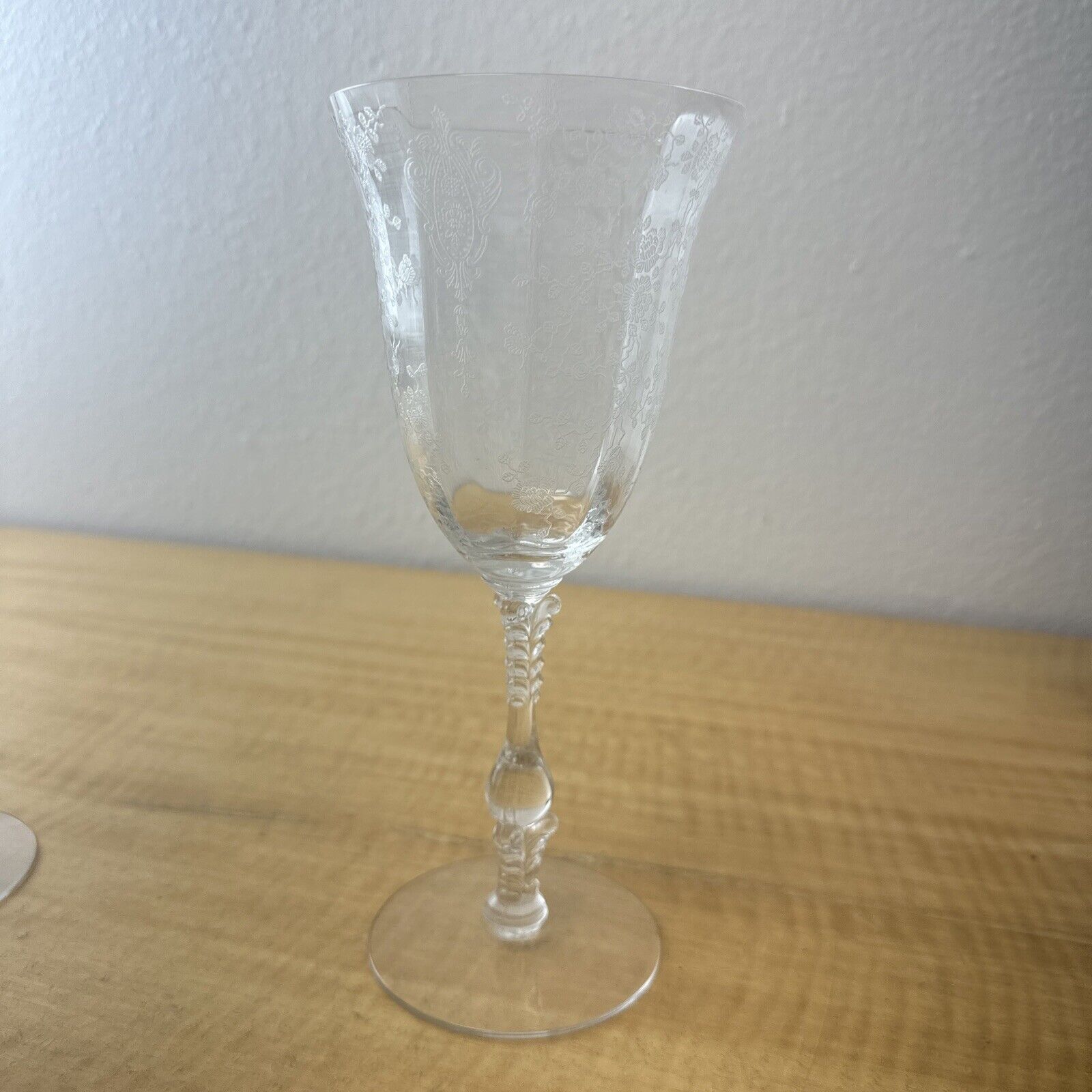 Cambridge Rose Point Crystal Water Goblet Glasses Vntg 10 Oz 8 1/2"tall