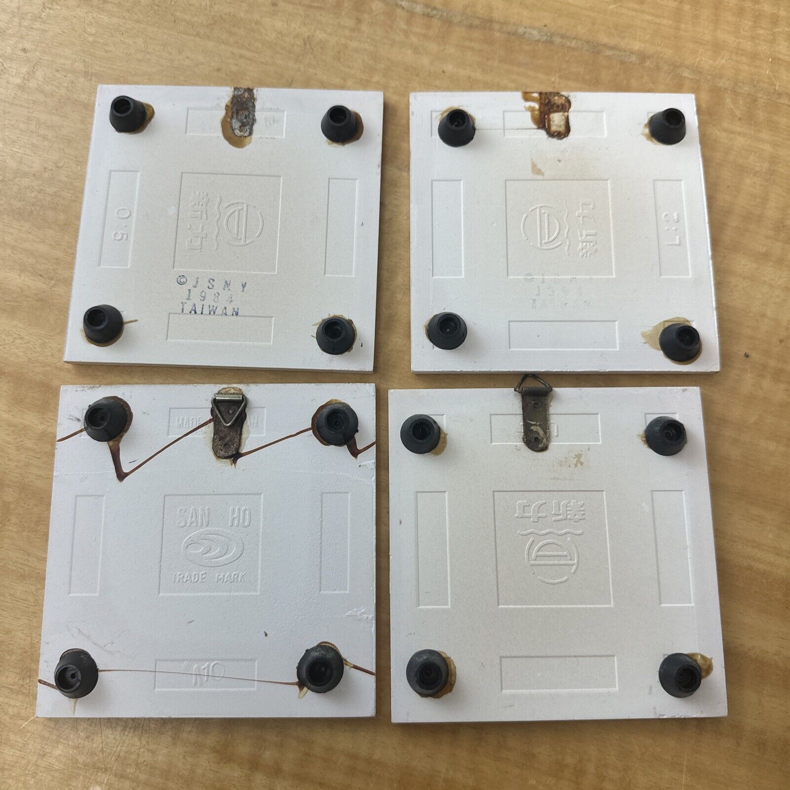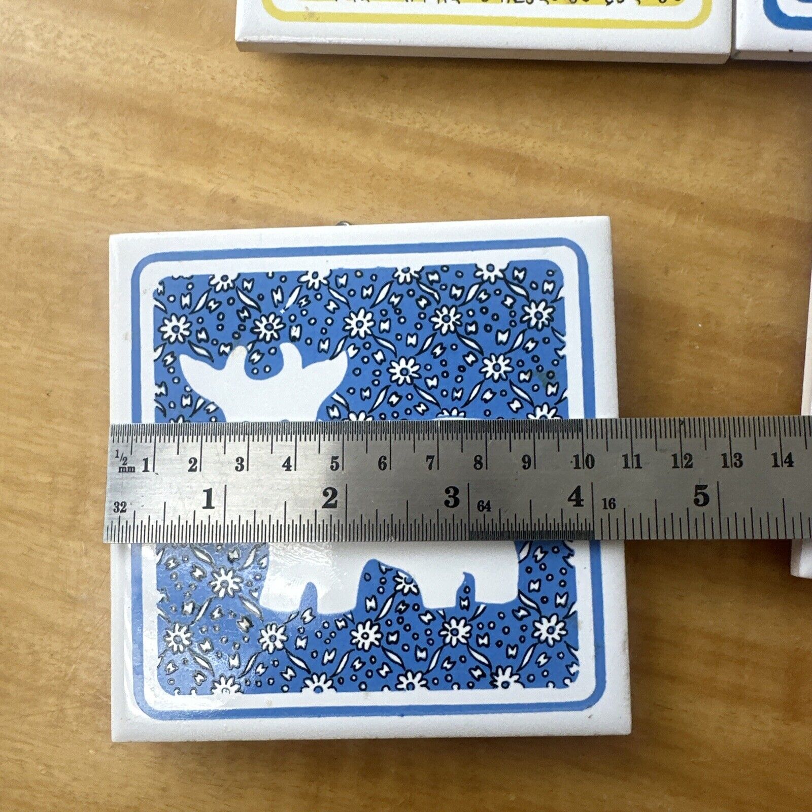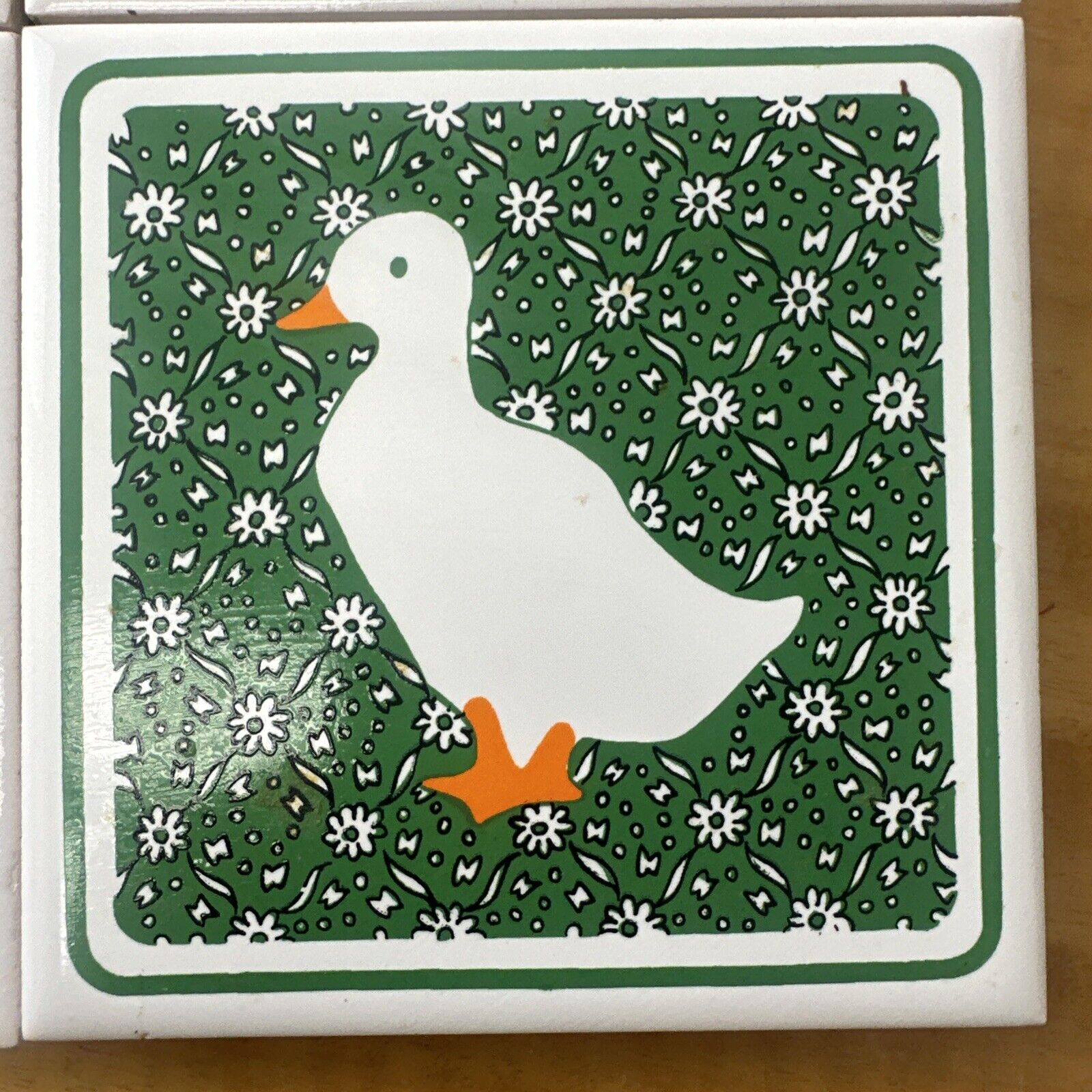 VINTAGE FARM ANIMAL COUNTRY CALICO CERAMIC TILE TRIVETS COASTER SET OF 4
