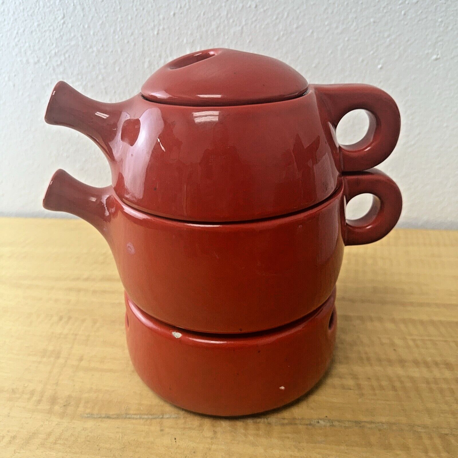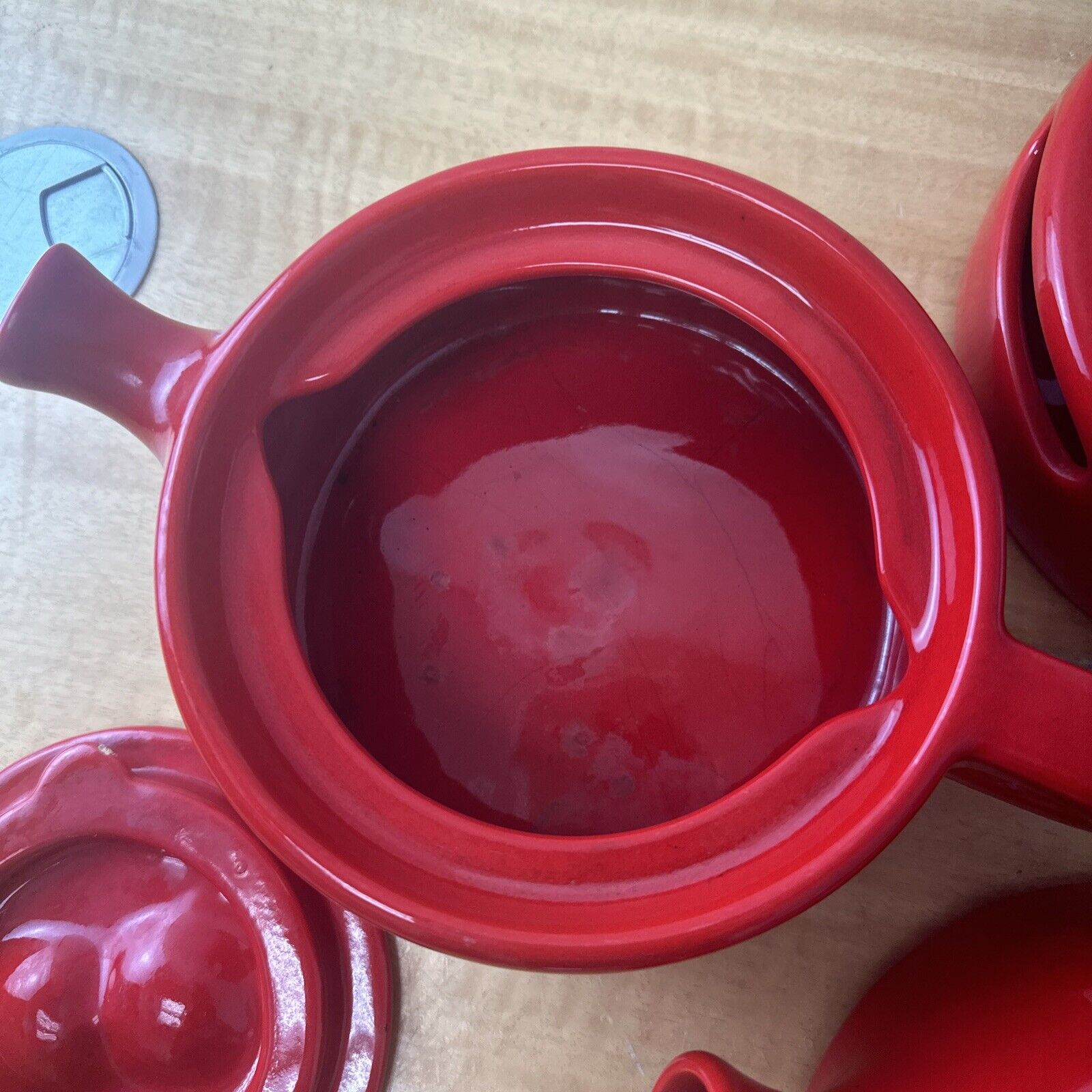 Vintage GABBIANELLI Liisi Beckmann 1967 Red Stackable Tea Set SEE PHOTOS