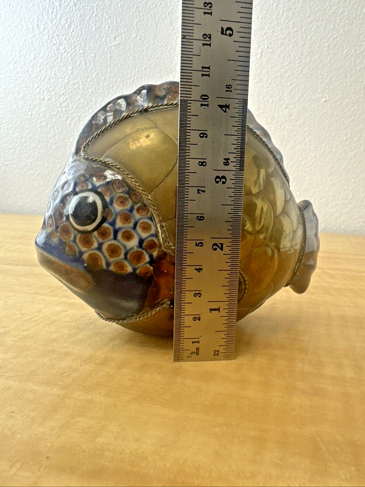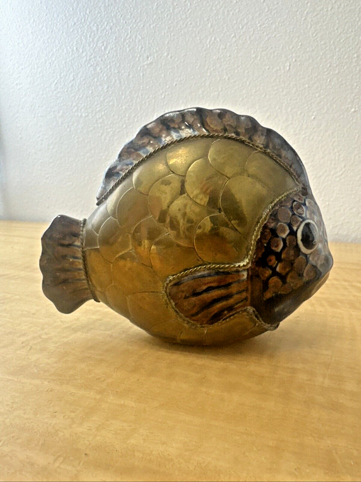 VINTAGE ARTS & CRAFTS STYLE BRASS & ENAMEL FISH