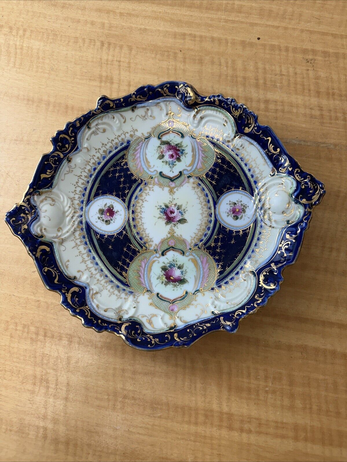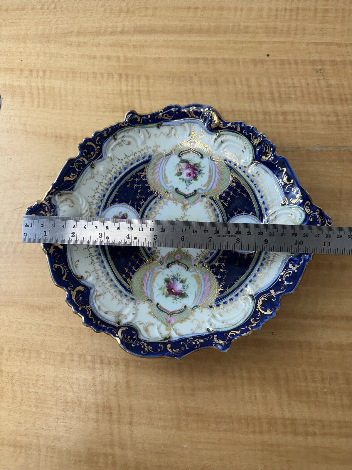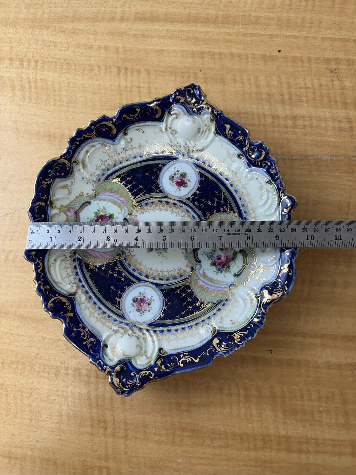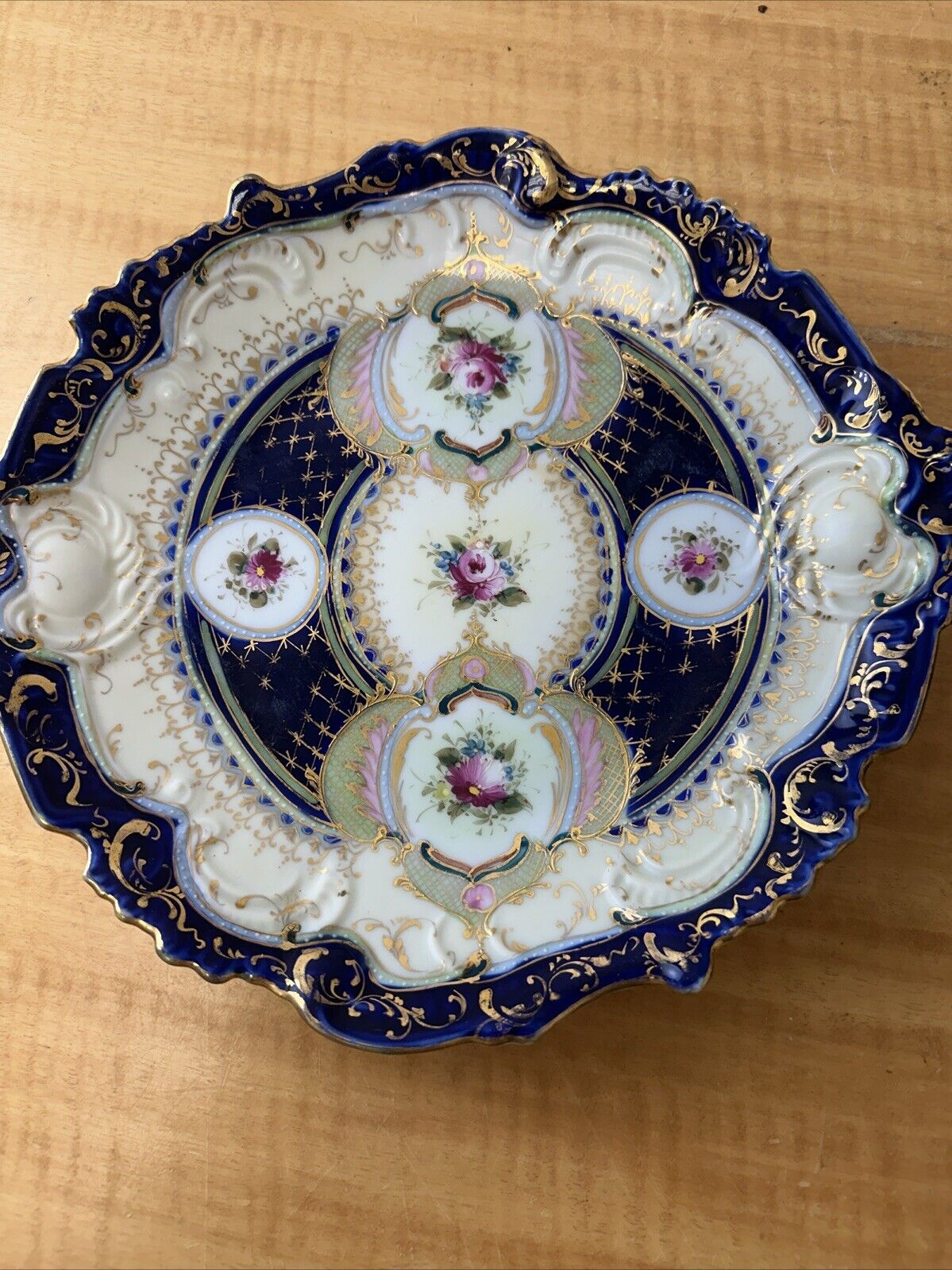 Antique Japanese Nippon Hand-Painted 10" Cobalt Blue & Gold Plate with Flowers