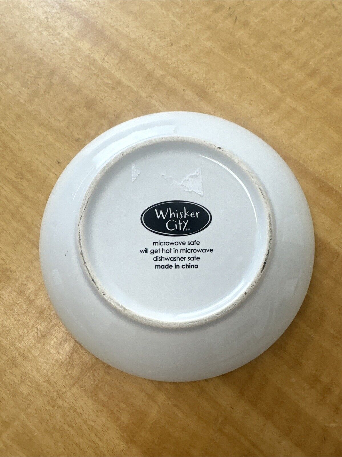 Whisker City Ceramic Cat Trinket Food Dish 5" W