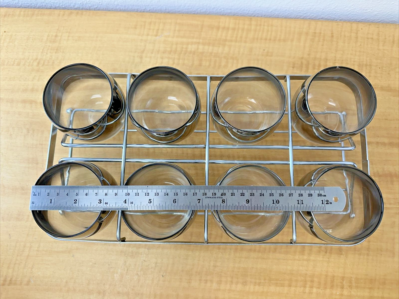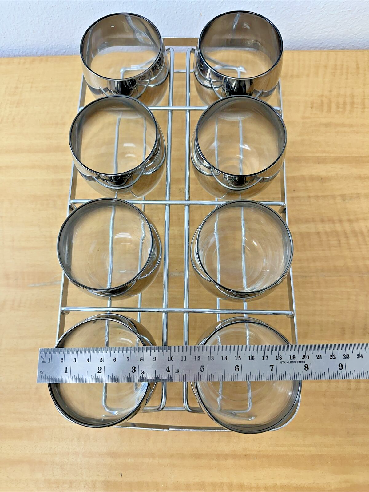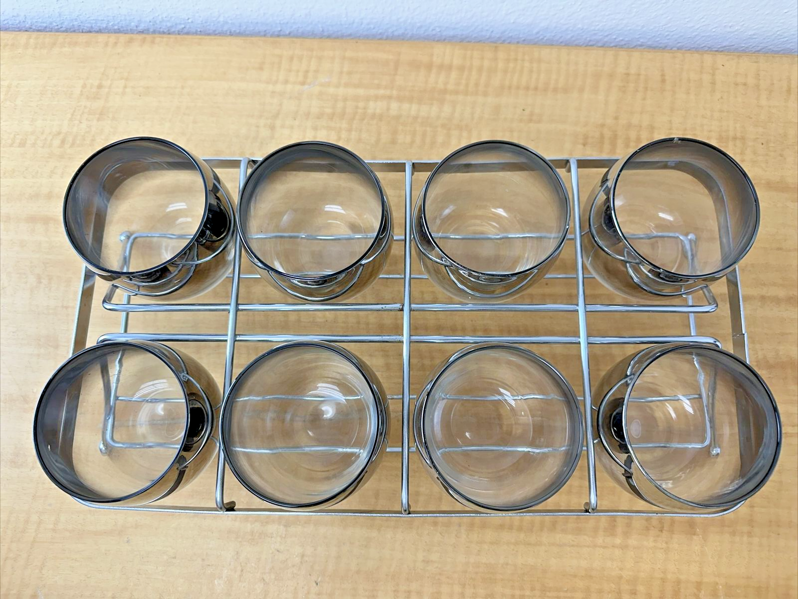 DOROTHY THORPE Silver Mercury Roly Poly Glasses w Stand MCM Mid Century Cocktail