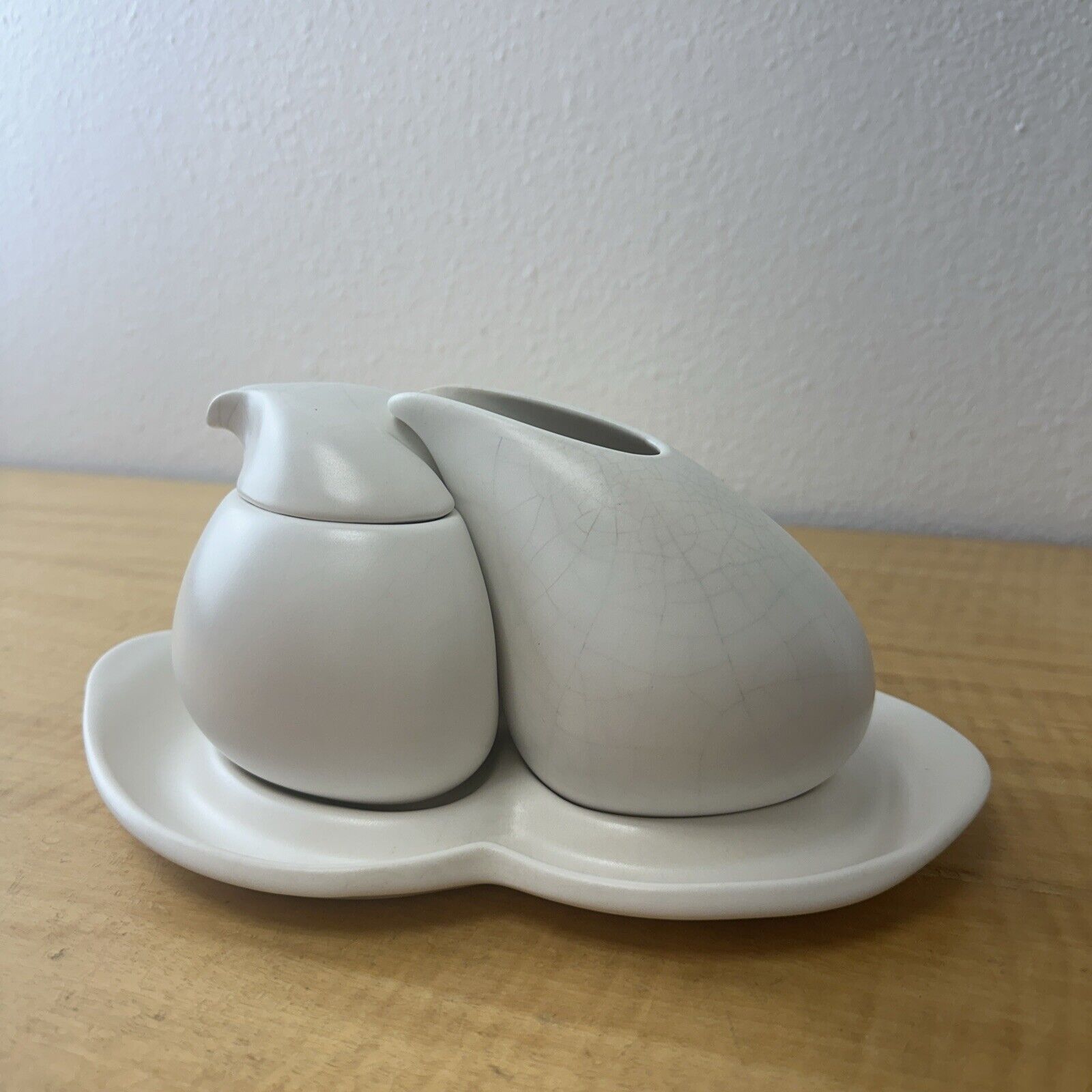 Peter Saenger White Nesting Sugar Creamer and Tray - Retail $195