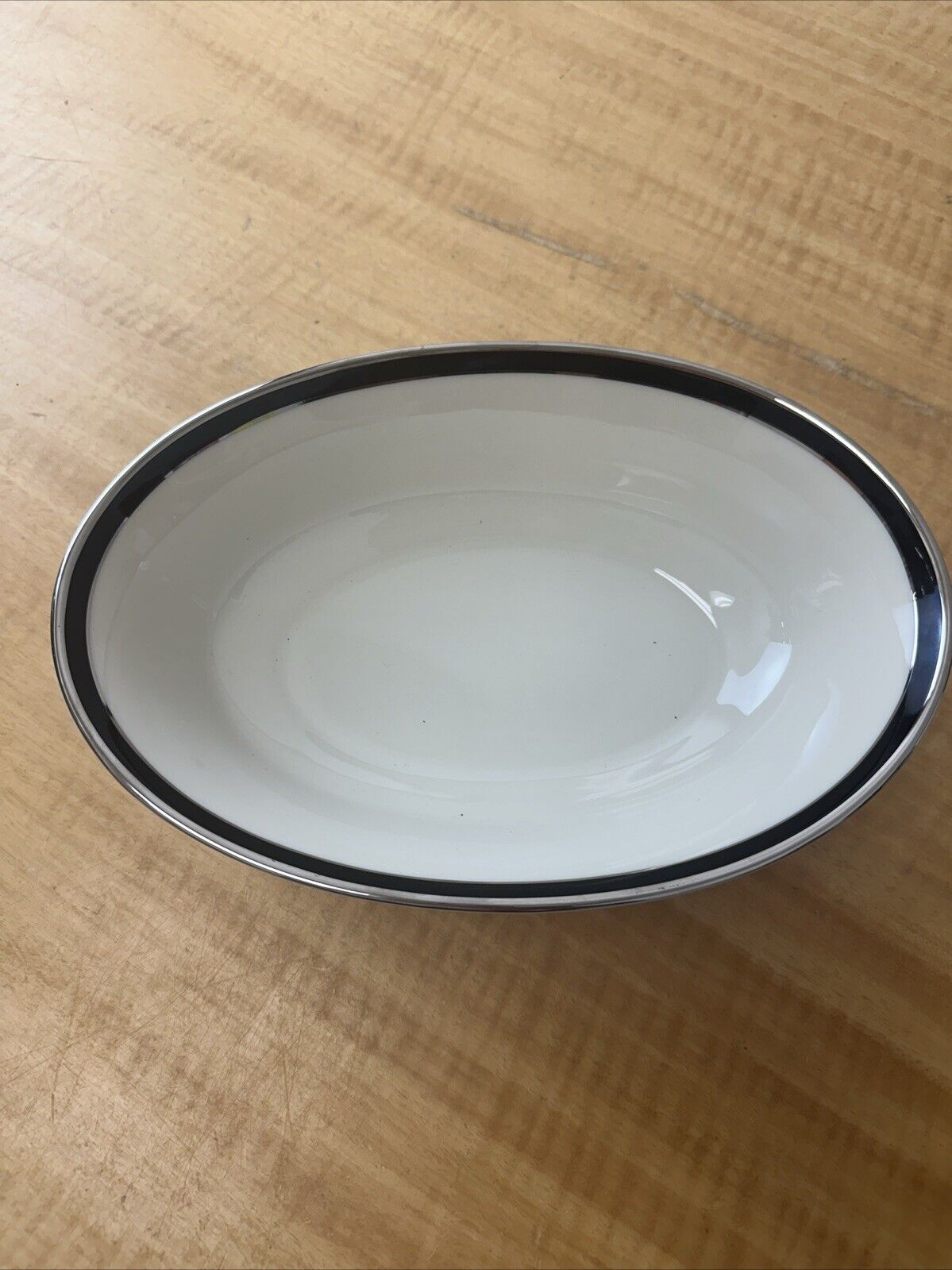 Lenox Black Royale 9 1/4 Inch Oval Vegetable Bowl Black and Platinum Band