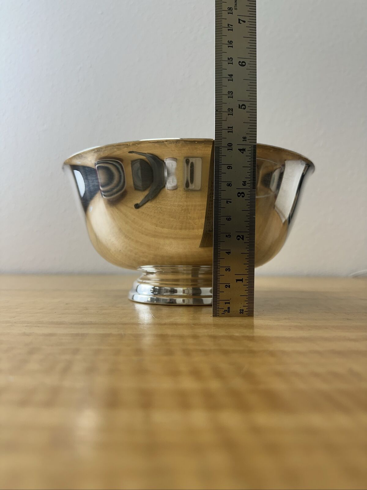 8” Vintage Reed & Barton Silver Plate Teal Enameled Footed Bowl - #104
