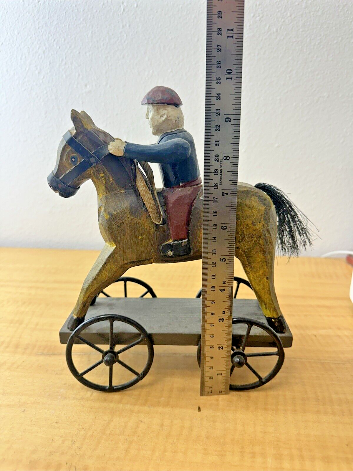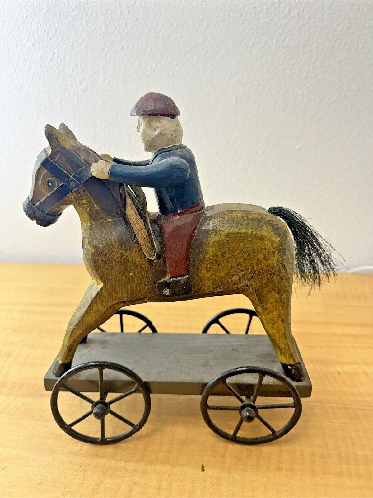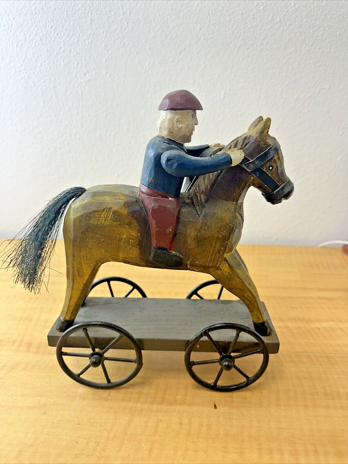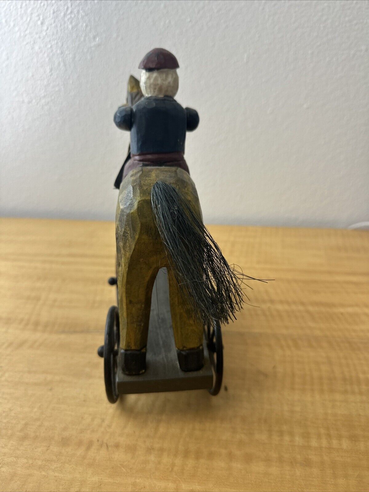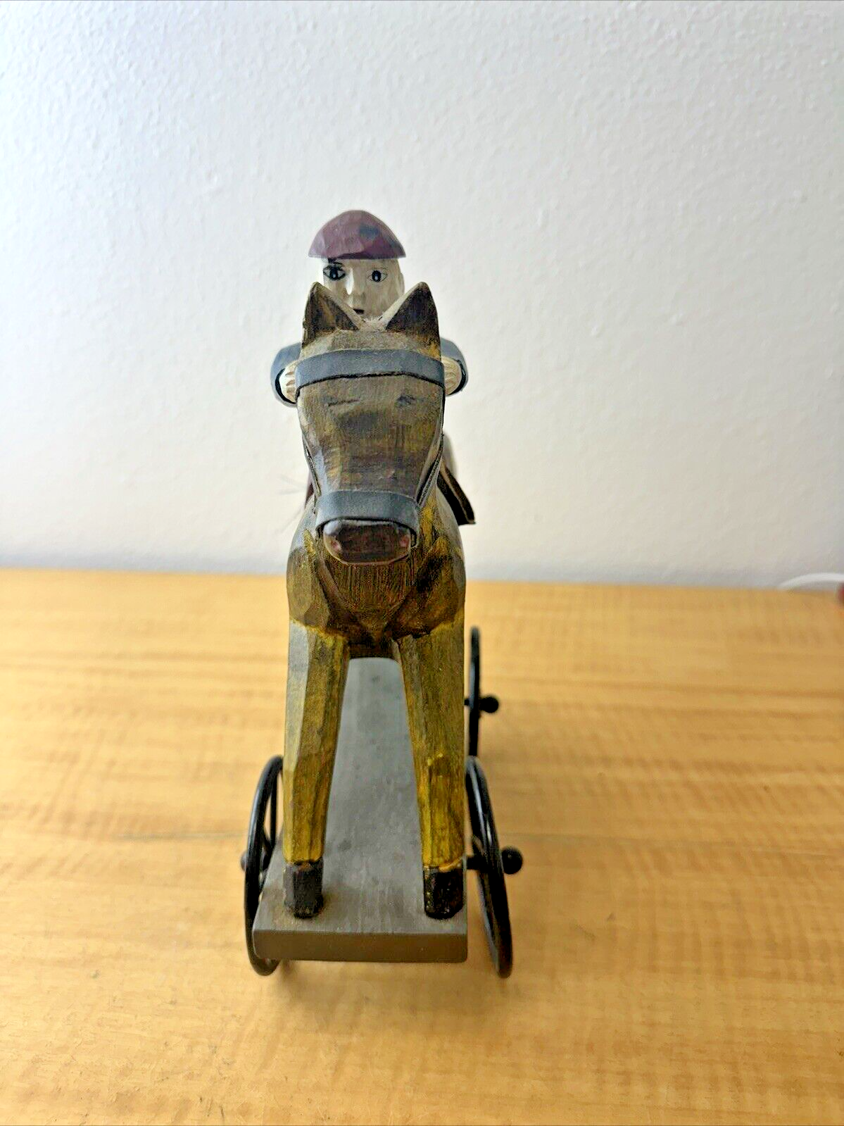 Vintage HORSE ON THE WHEELS with the rider COLLECTIBLE ART statue