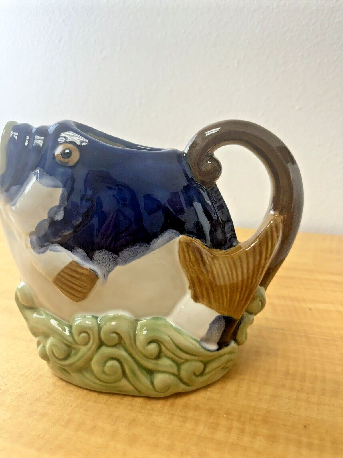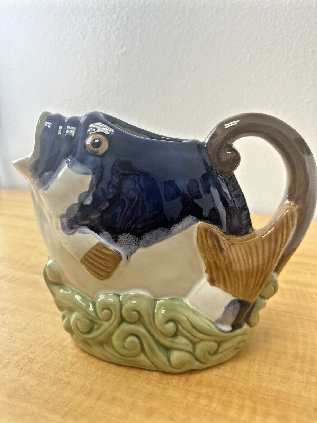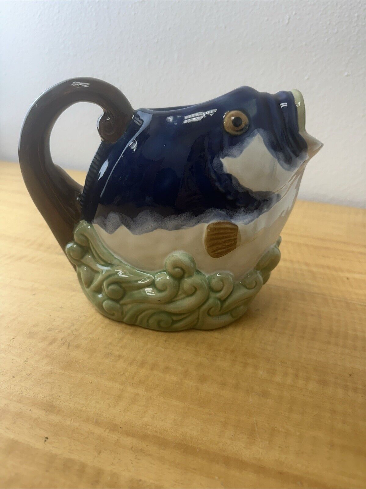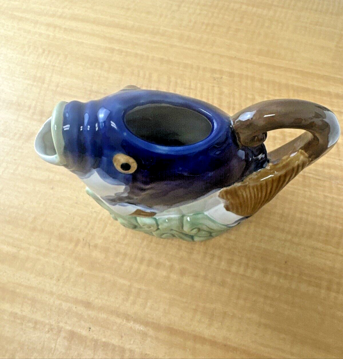 Vintage Majolica Blue, Yellow, Green Fish Tea Pot in Mint Condition
