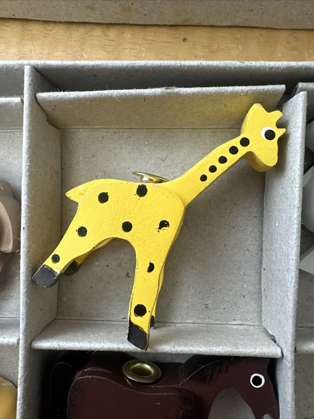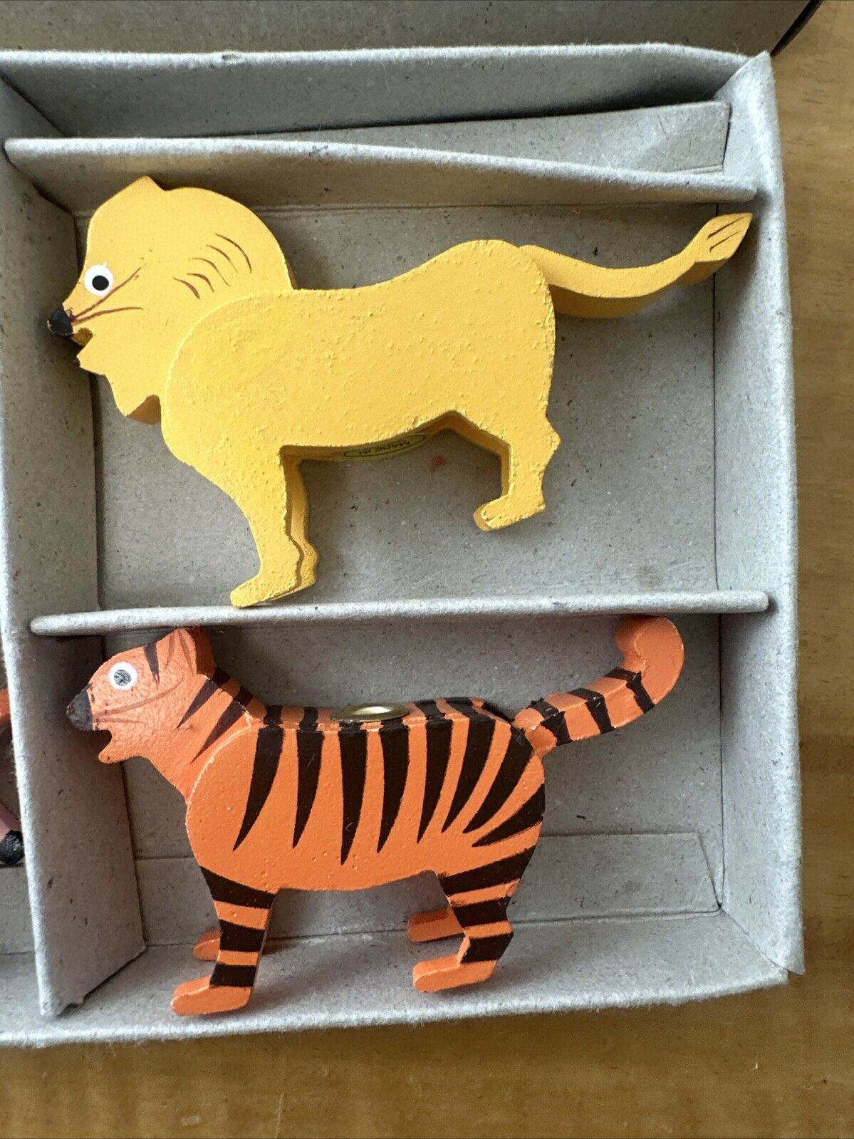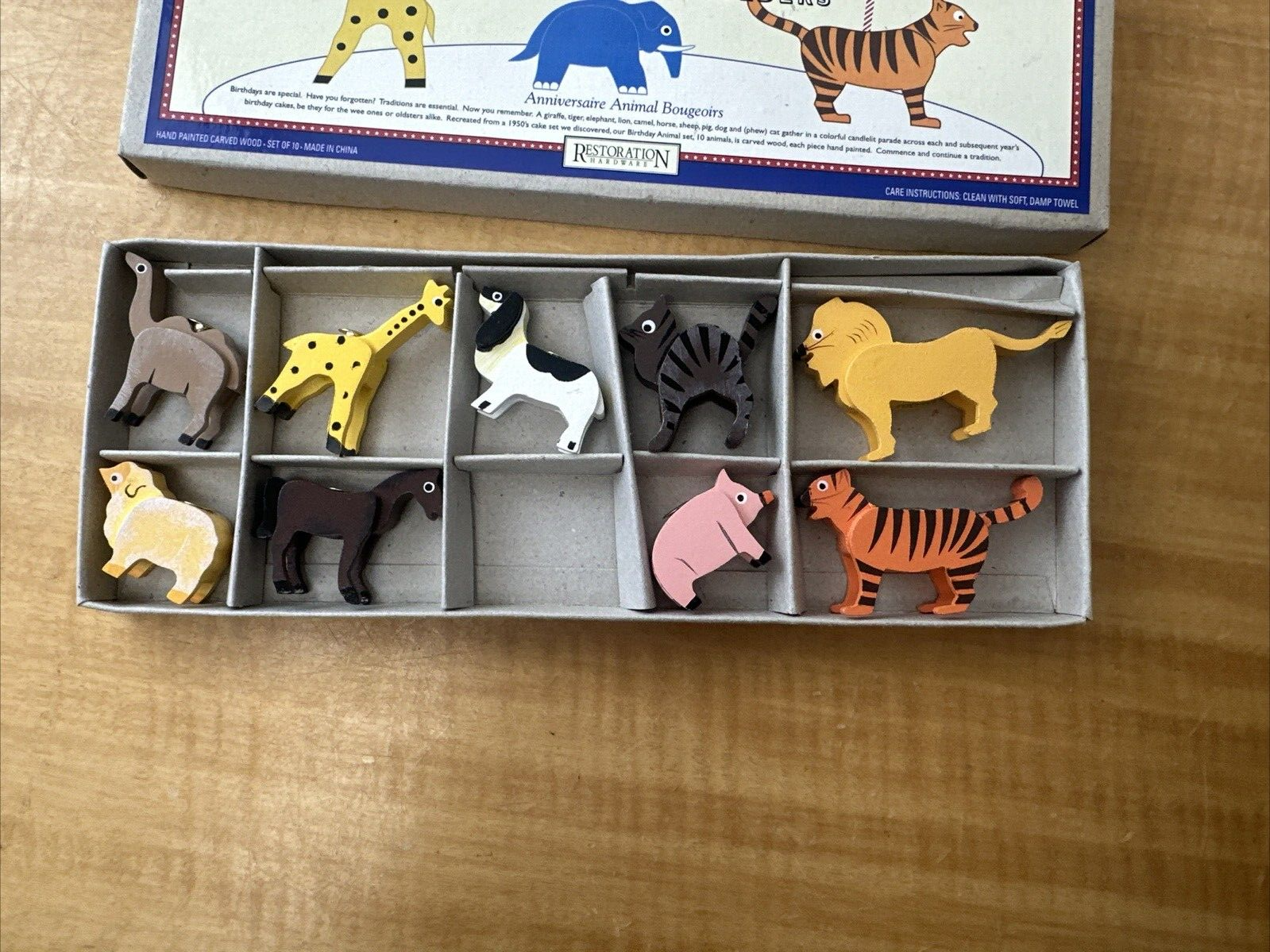 Restoration Hardware Wood Animal Birthday Cake Candle Holders, Hand Painted