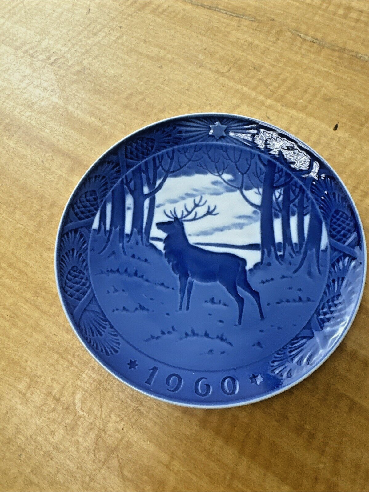 Vintage Royal Copenhagen Collectible Blue Christmas Plate 1960 - The Stag