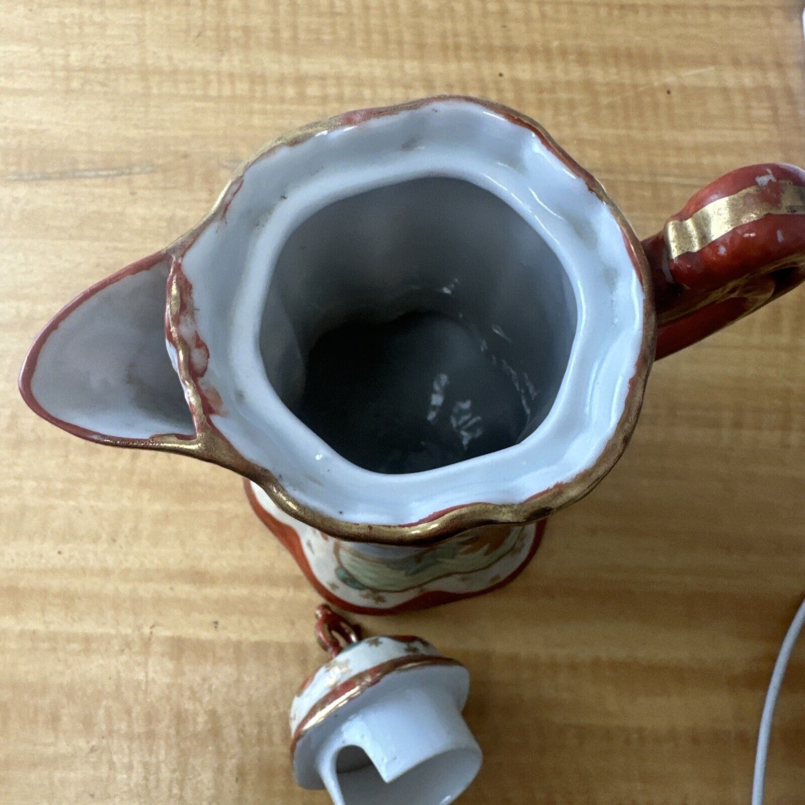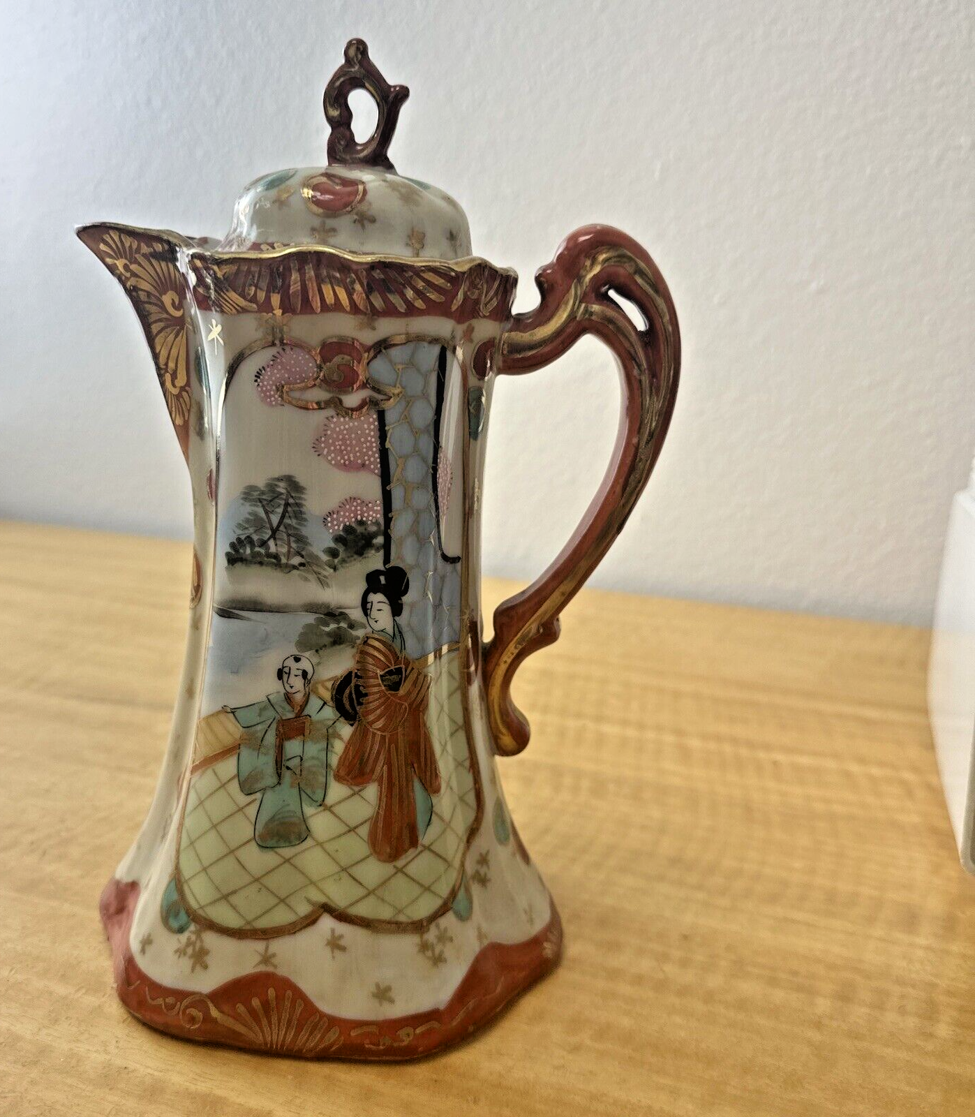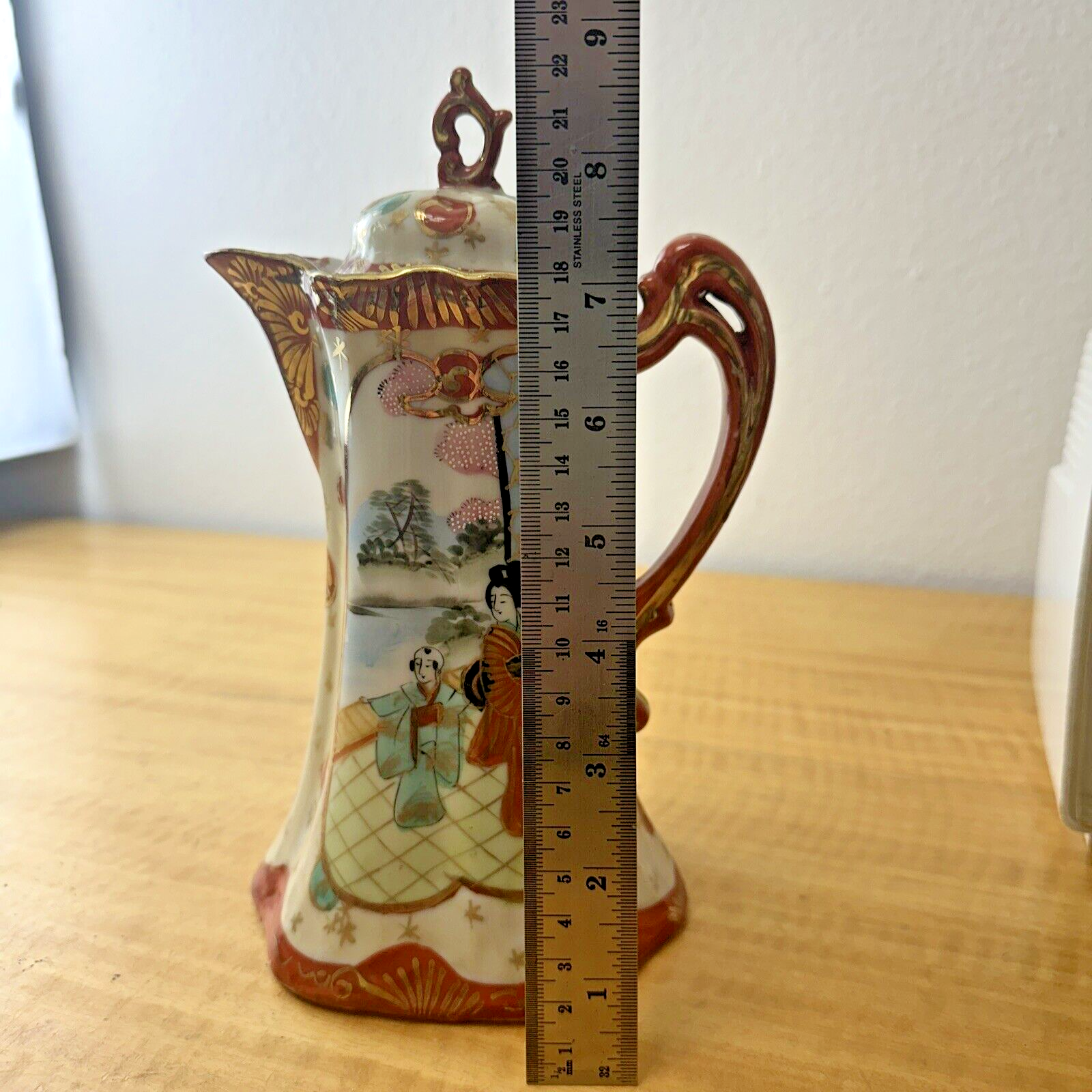 ANTIQUE JAPANESE KUTANI CERAMIC TEAPOT CHOCOLATE COFFEE PITCHER GEISHA GIOKUSEI
