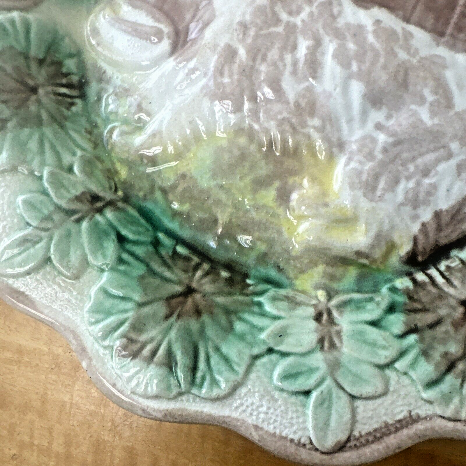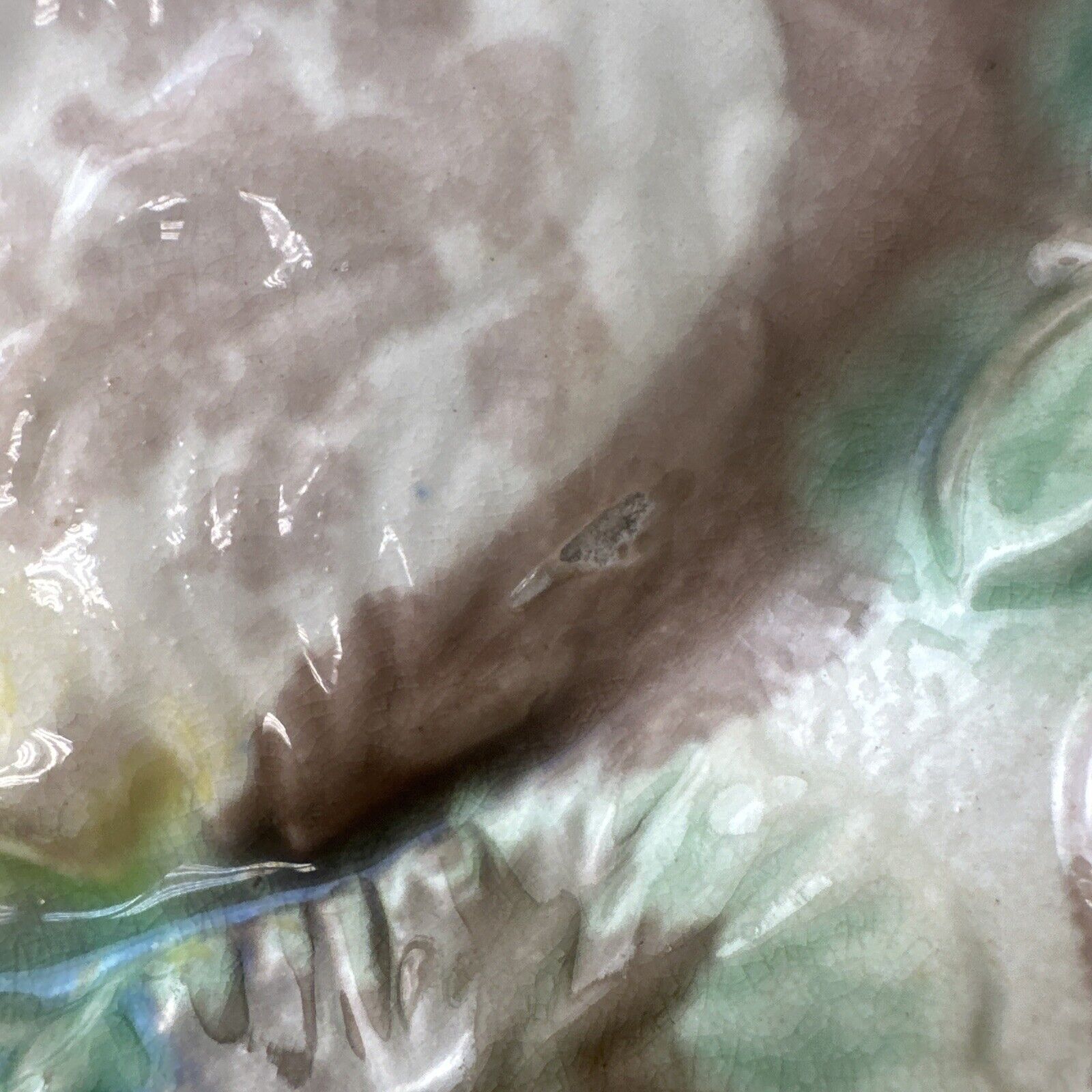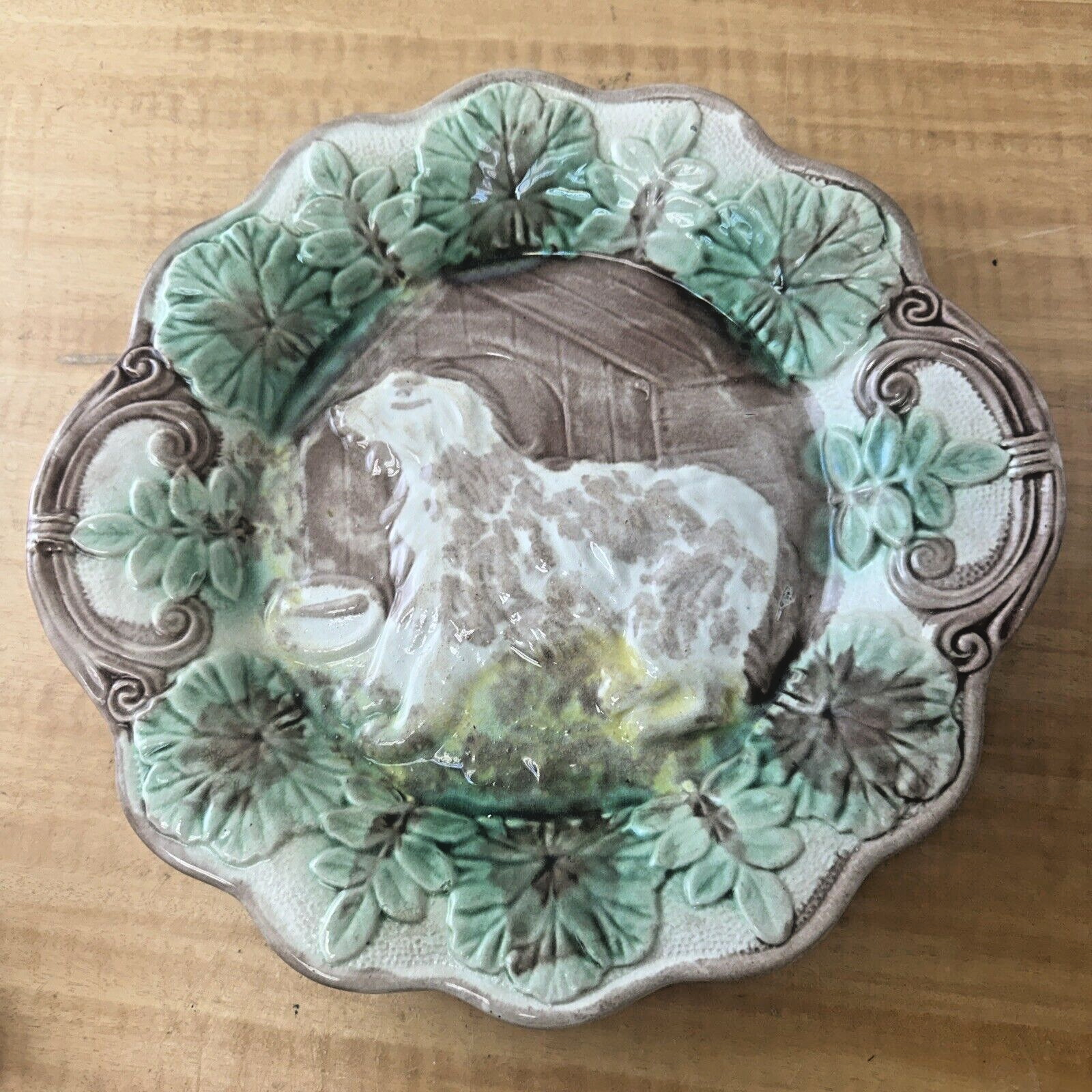 Antique USA Majolica Sheepdog Sheep Dog Plate Brown Sponge Arsenal Potteries 11"