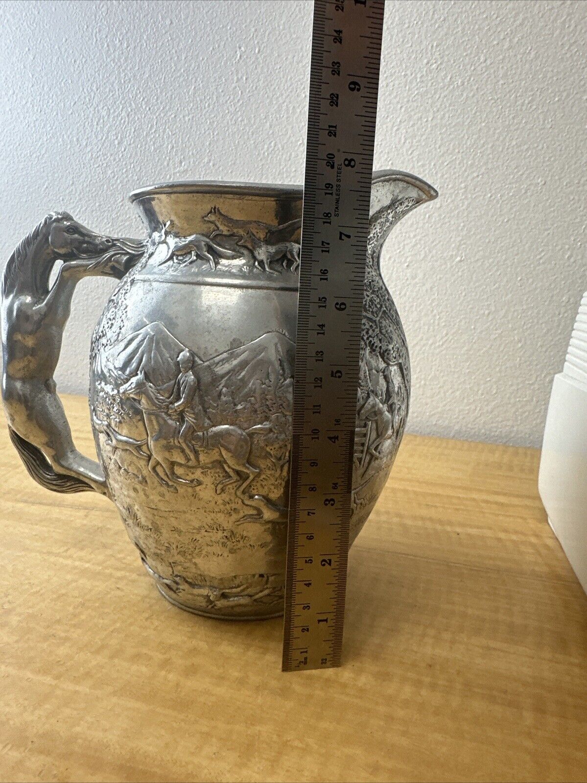 Arthur Court Horse Handle Cast Aluminum Pitcher Fox Hunting Equestrian 1989
