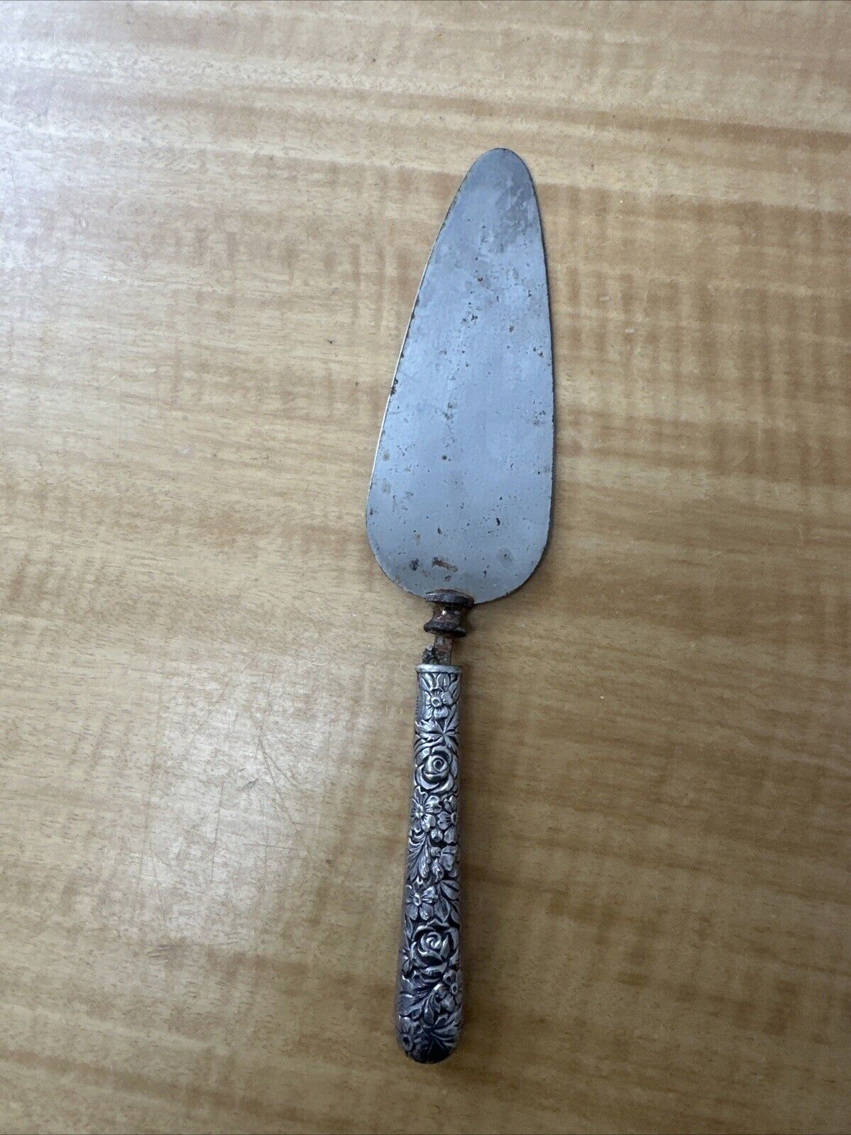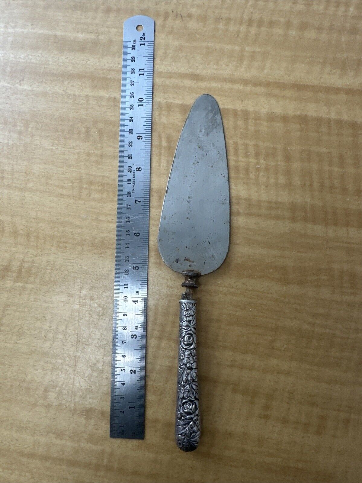 Sterling Embossed Rose Handle Serrated Pie Server 9-3/4"