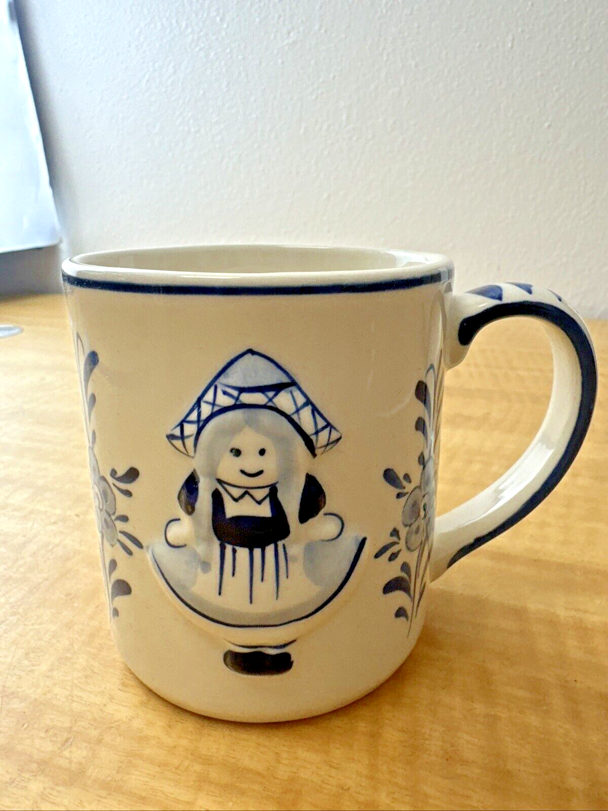 Vintage Delft Blauer Hand Painted Dutch Girl and Flower Danish Tea Mug- Holland