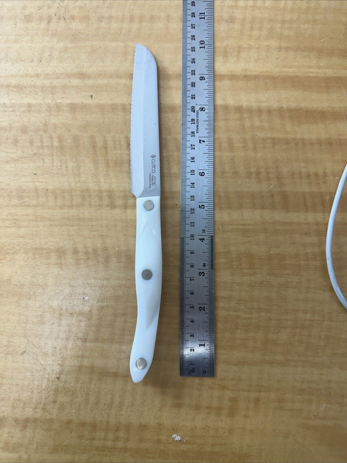 Cutco 3721 KO Santoku Serrated Kitchen Knife Pearl White Handle Vintage