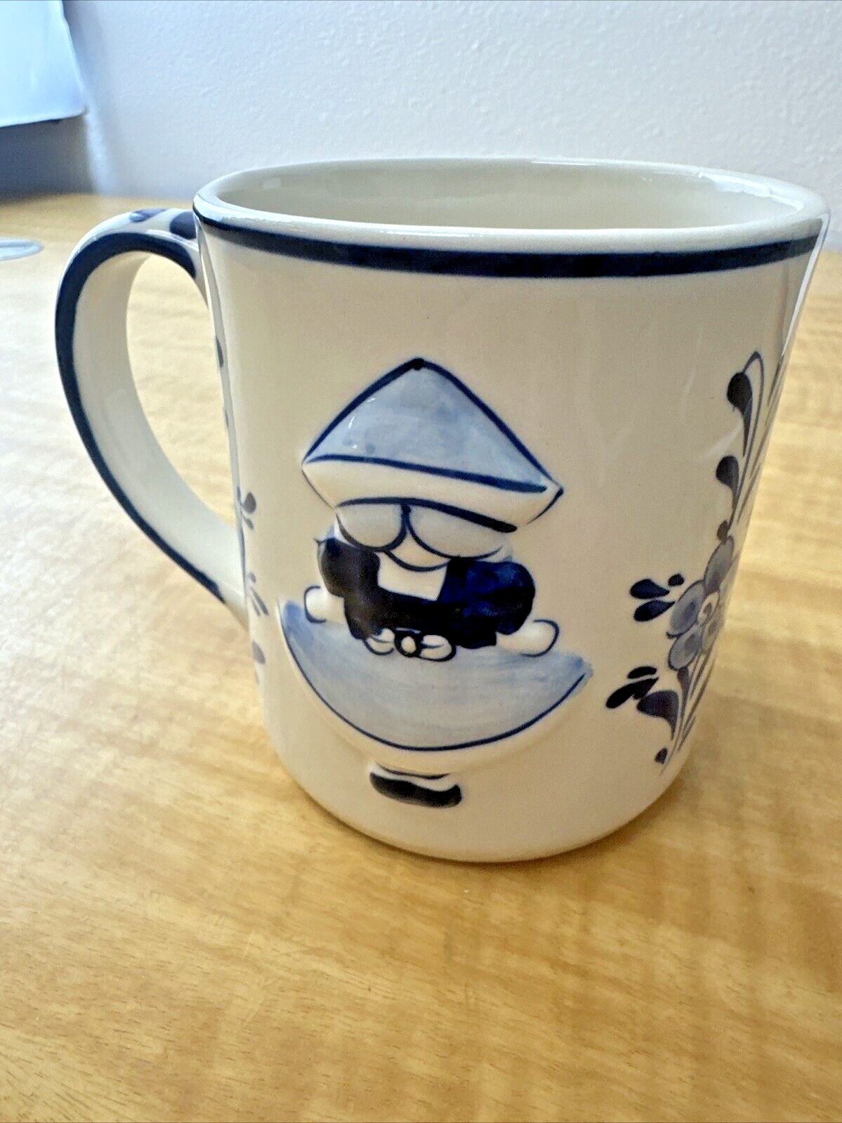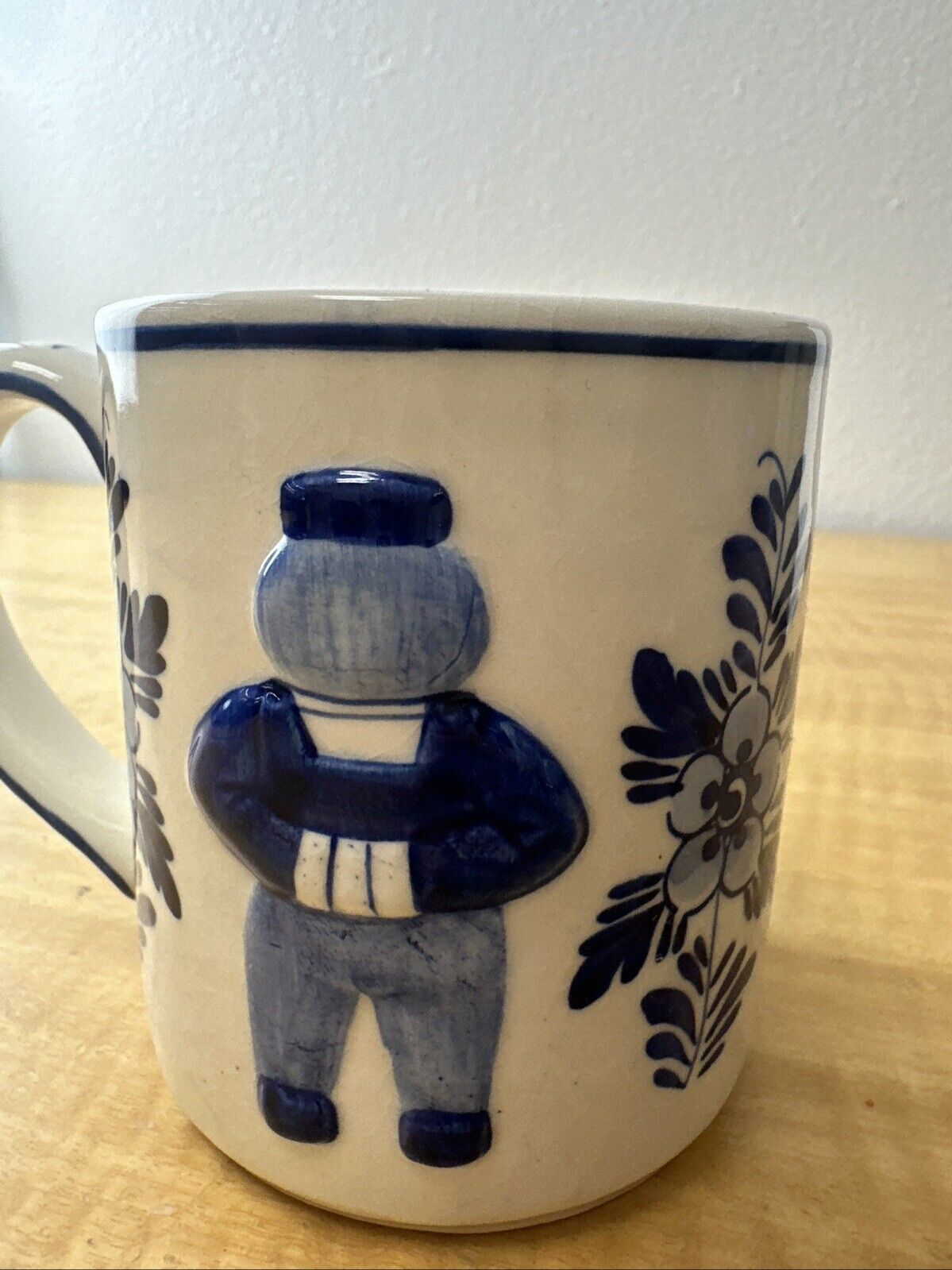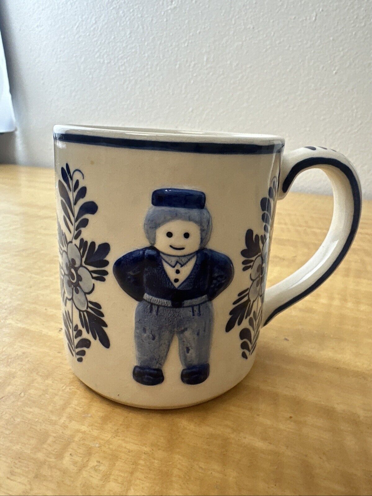 Vintage Delft Blauer Hand Painted Dutch Boy and Flower Danish Tea Mug- Holland
