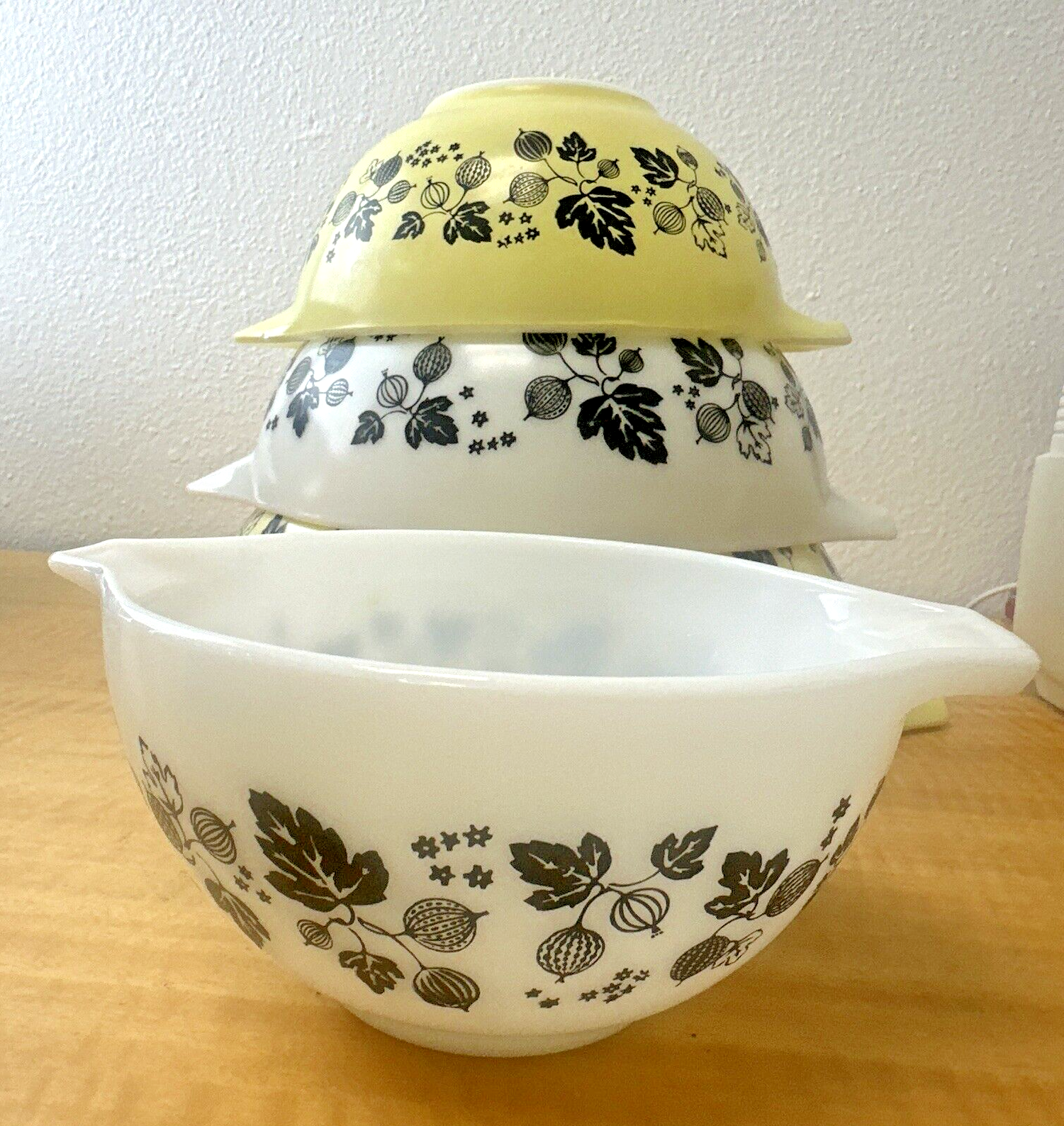 Pyrex Gooseberry Yellow & Black Cinderella Nesting (Mixing) Bowl Set!