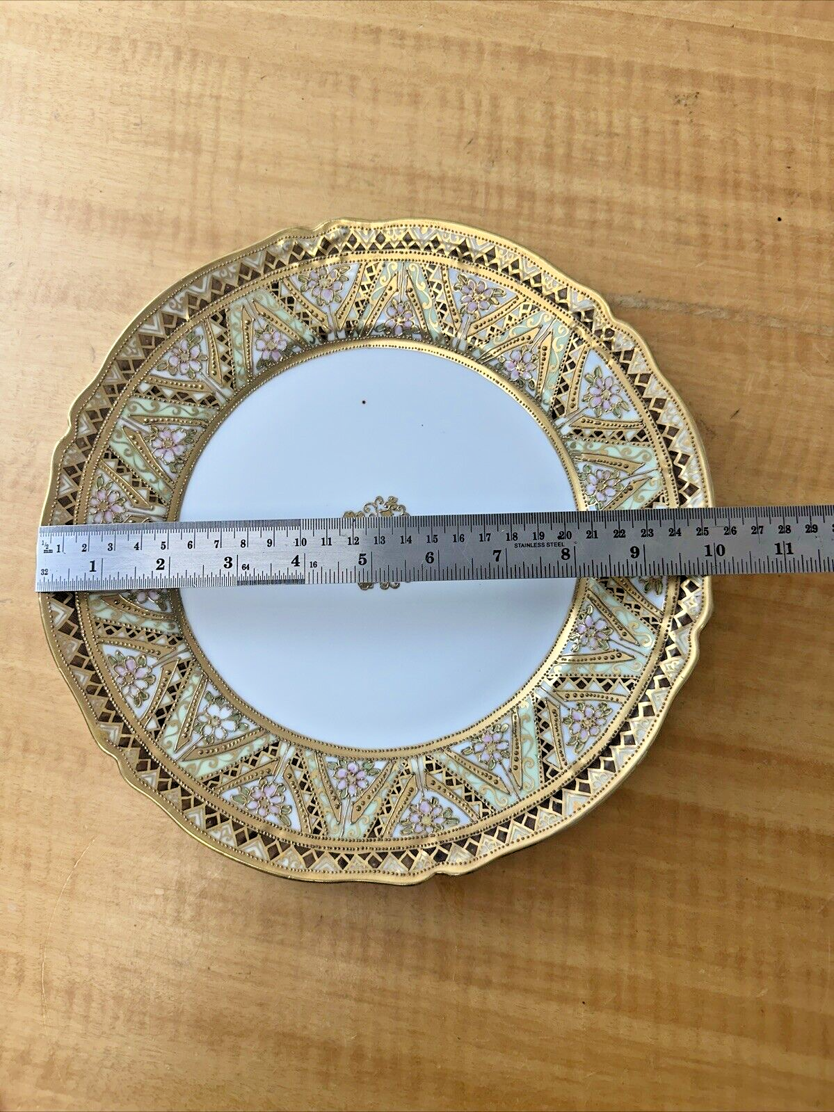 Nippon Hand Painted 10 Inch DINNER Plate - With Flowers and Gold