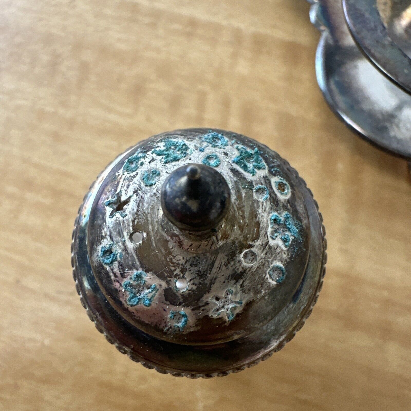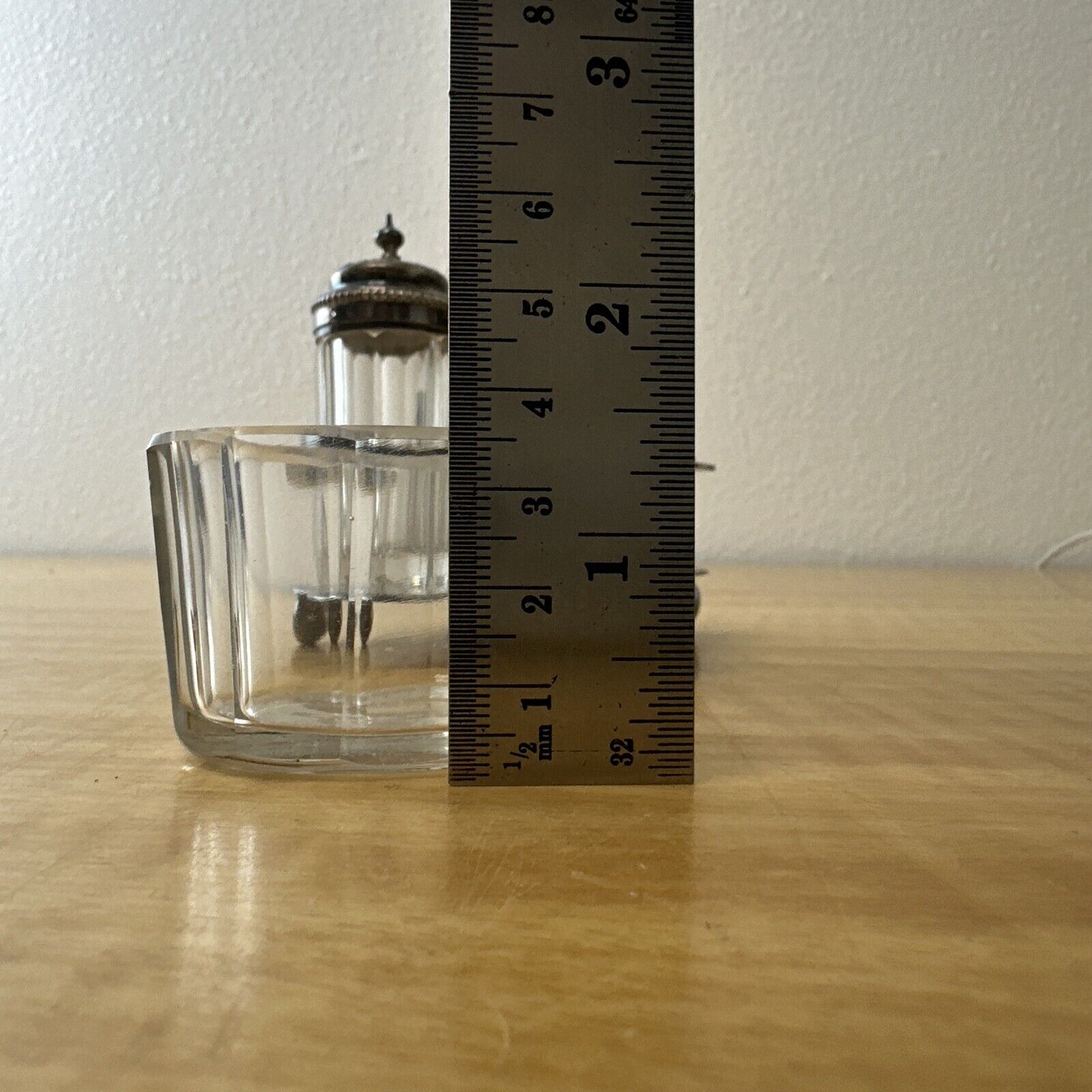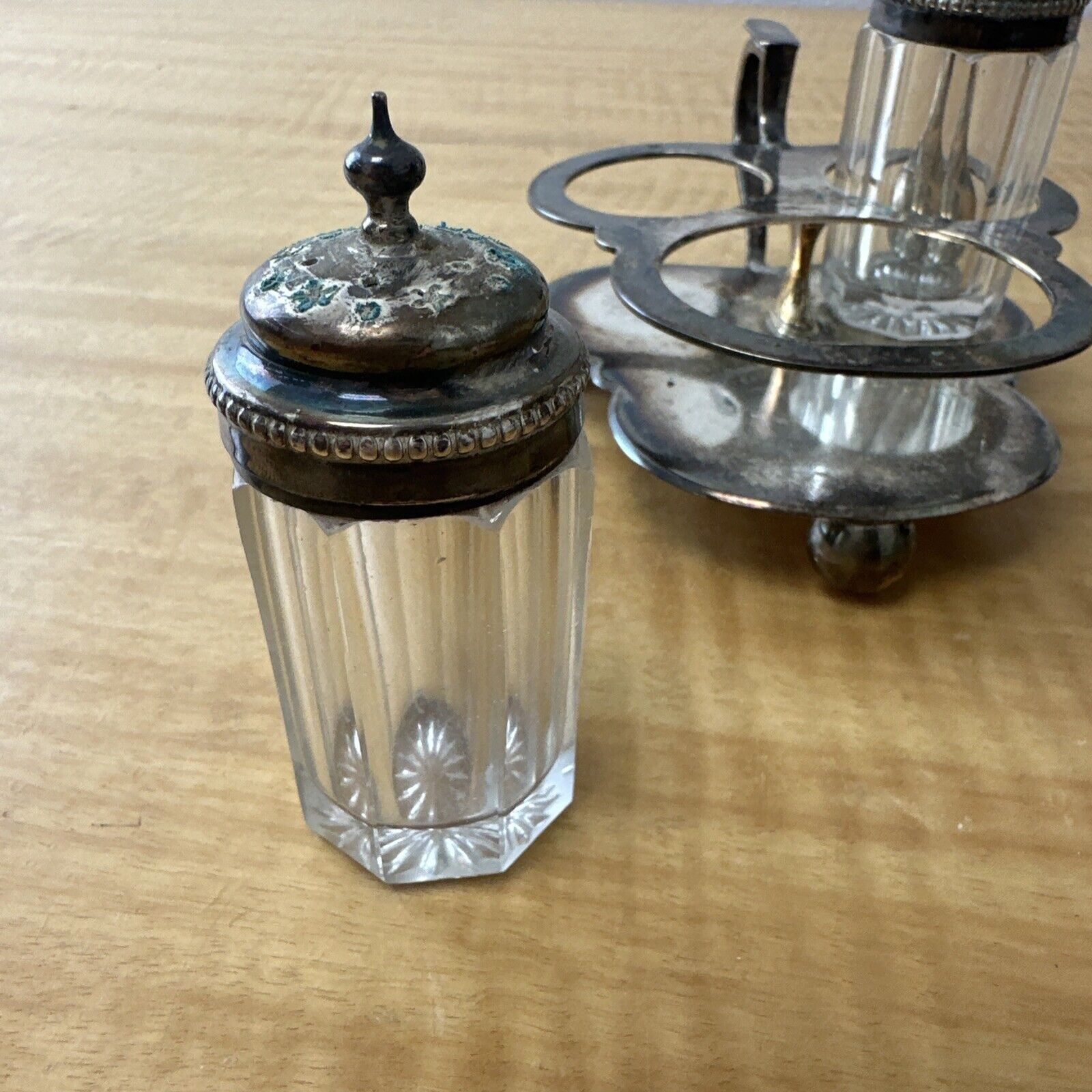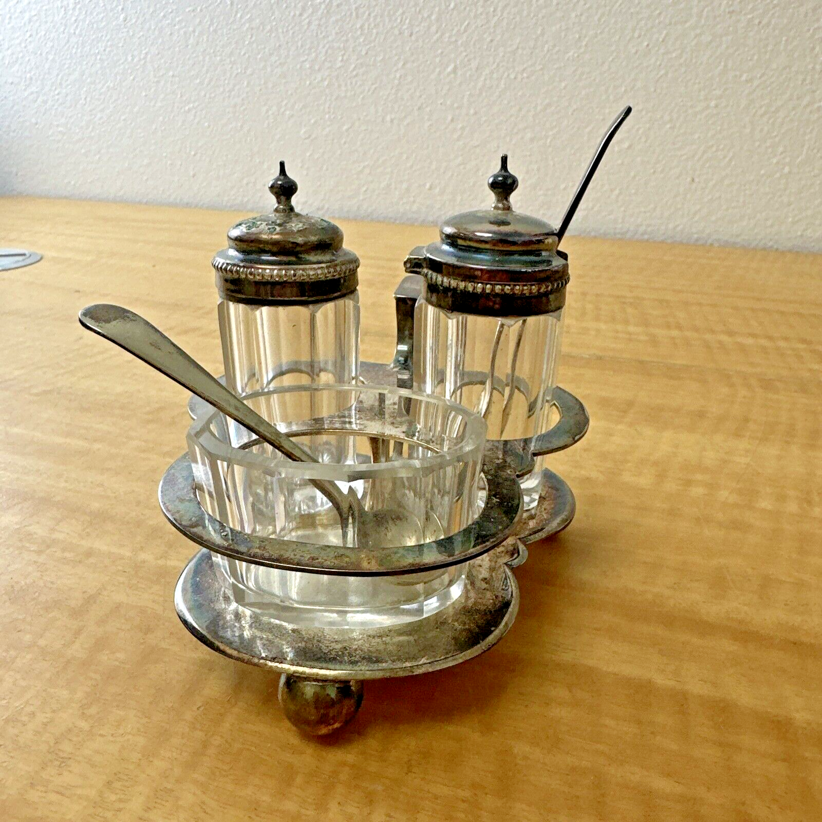 Vintage Cruet Set Salt Pepper Mustard Glass Silver Plated