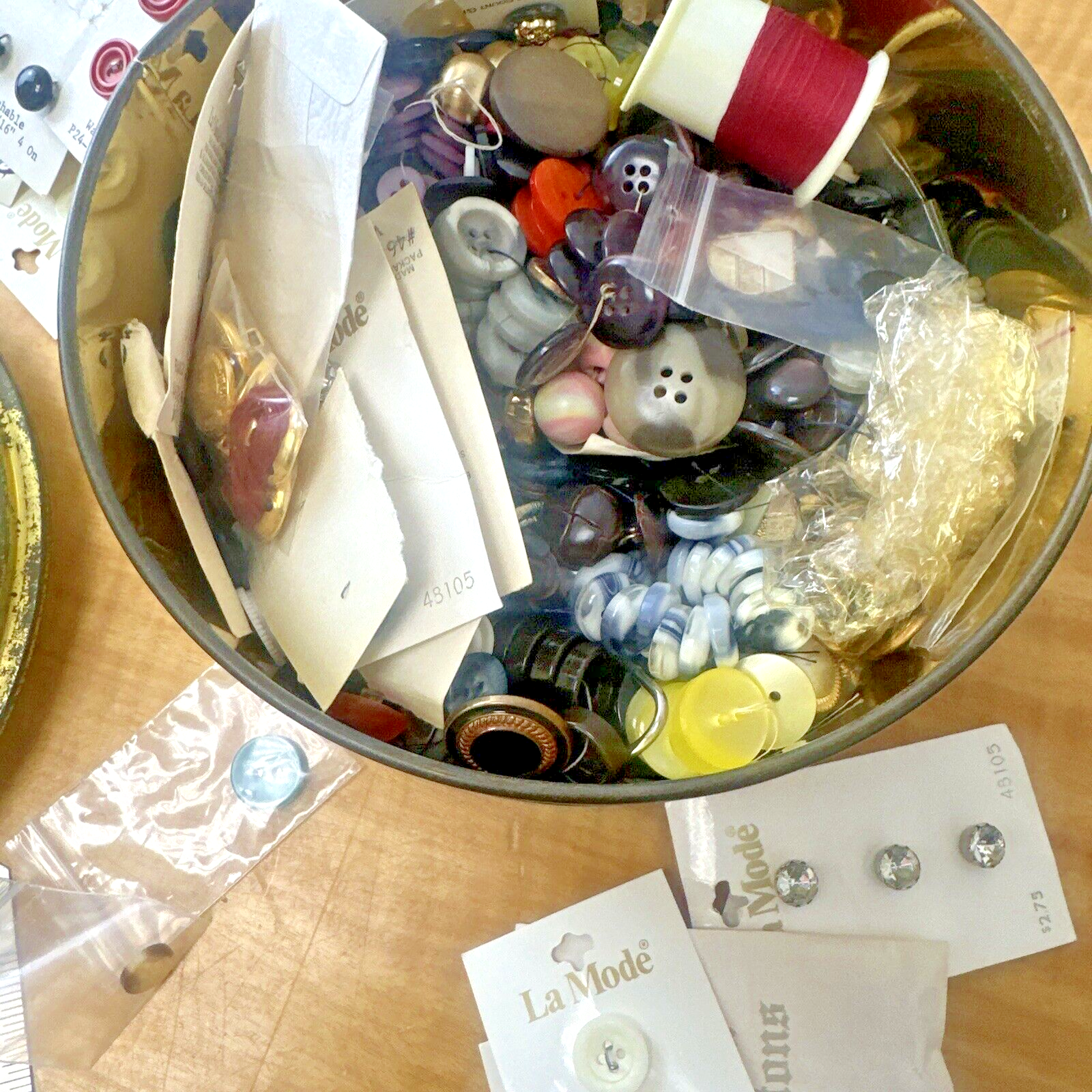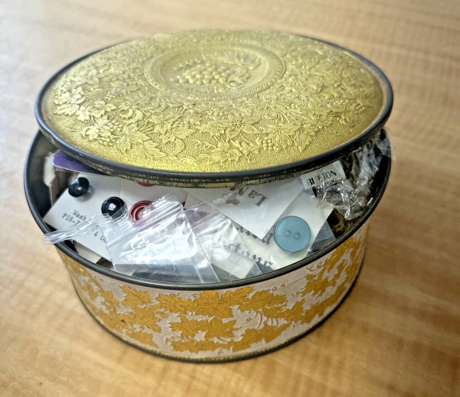 Vintage Container By Guildcraft New York White & Gold Grapes - 100s of Buttons