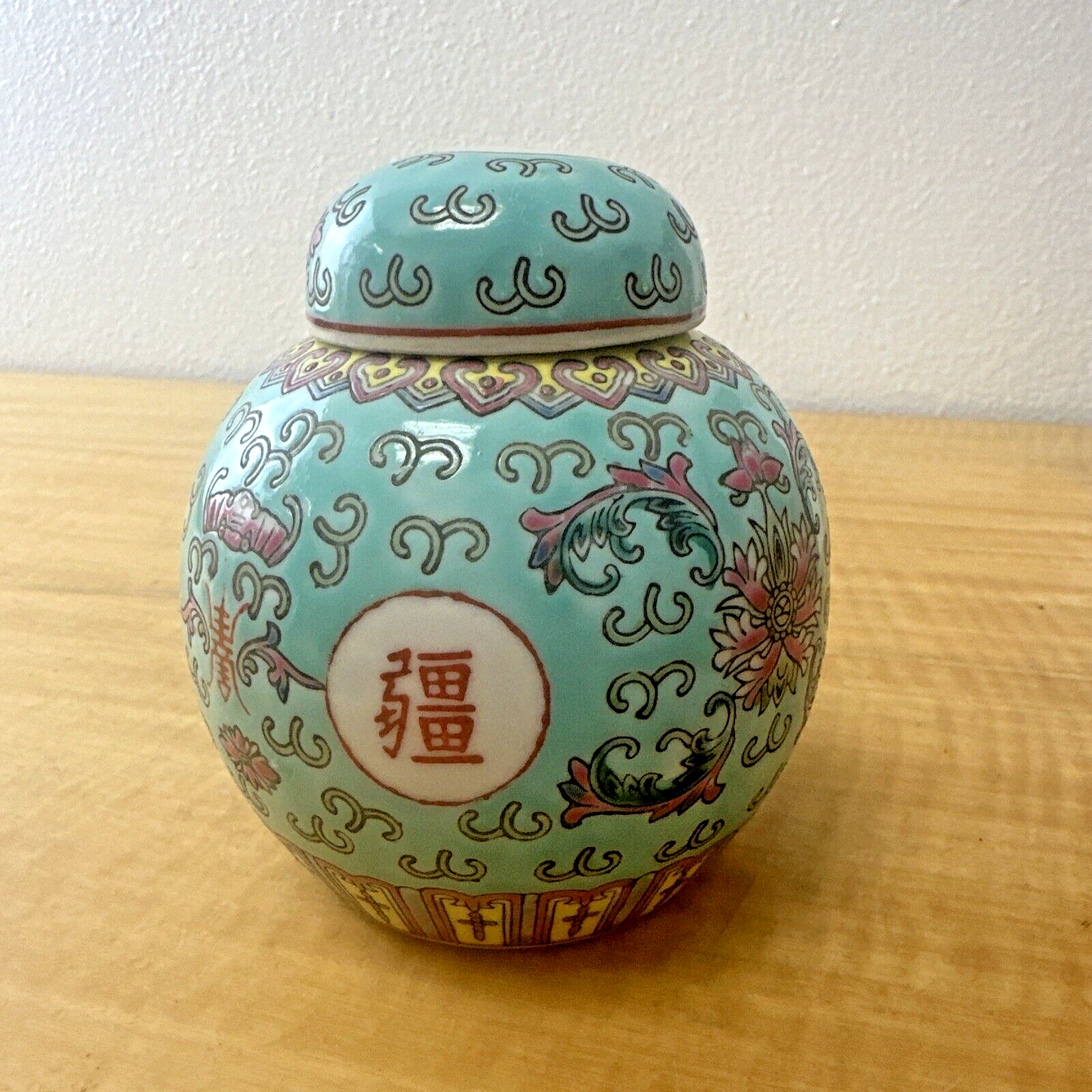 Vintage Zhongguo Jingdezhen Chinese China Porcelain Turquoise Ginger Jar EUC