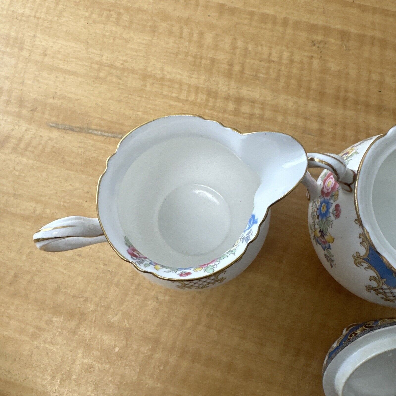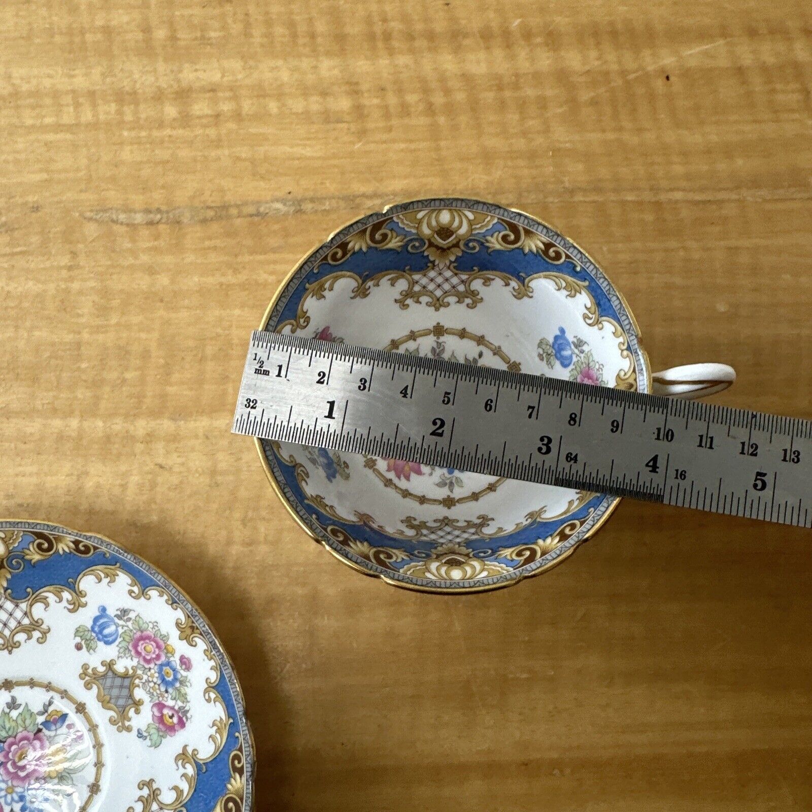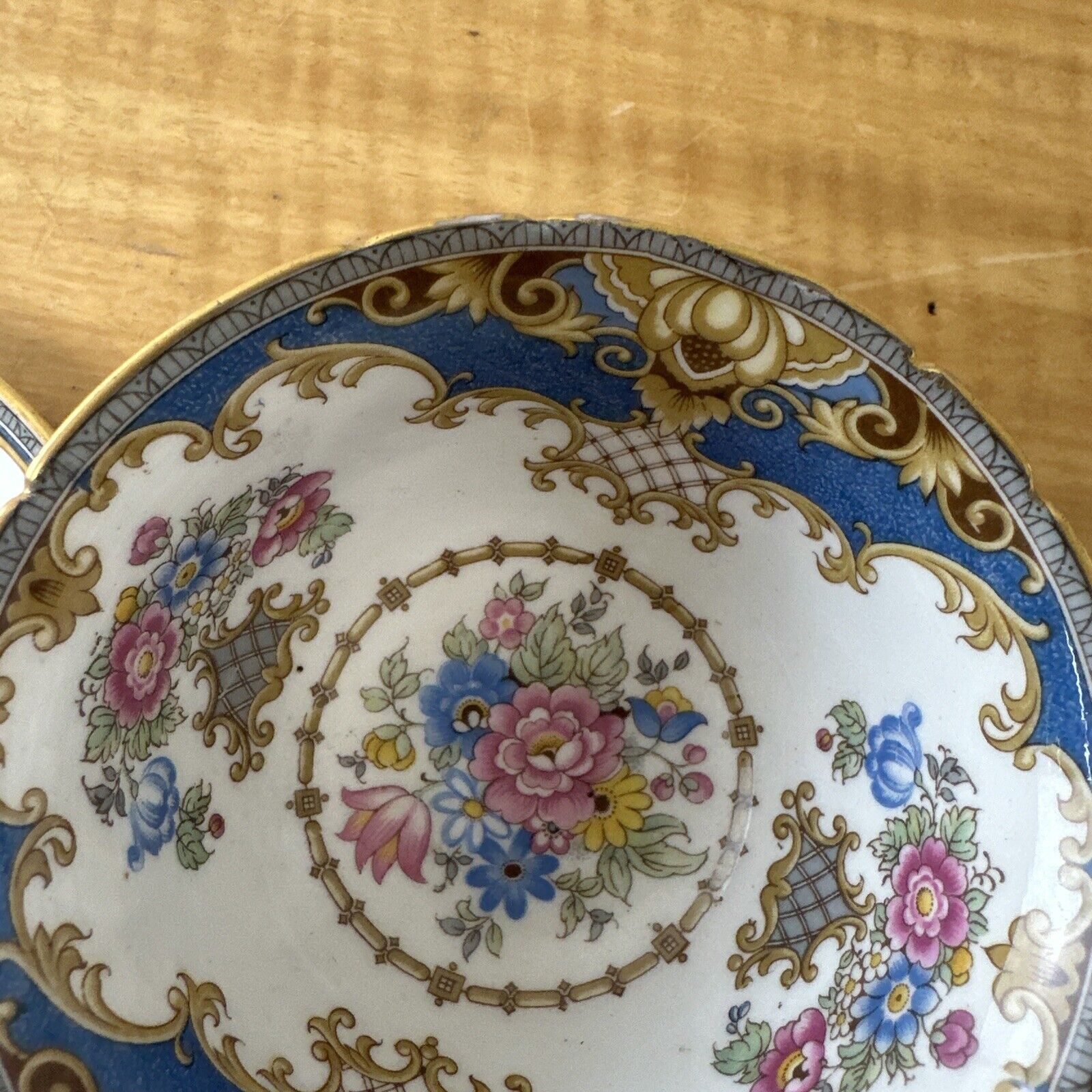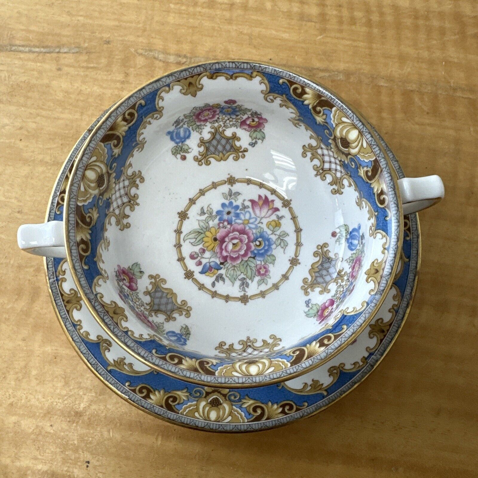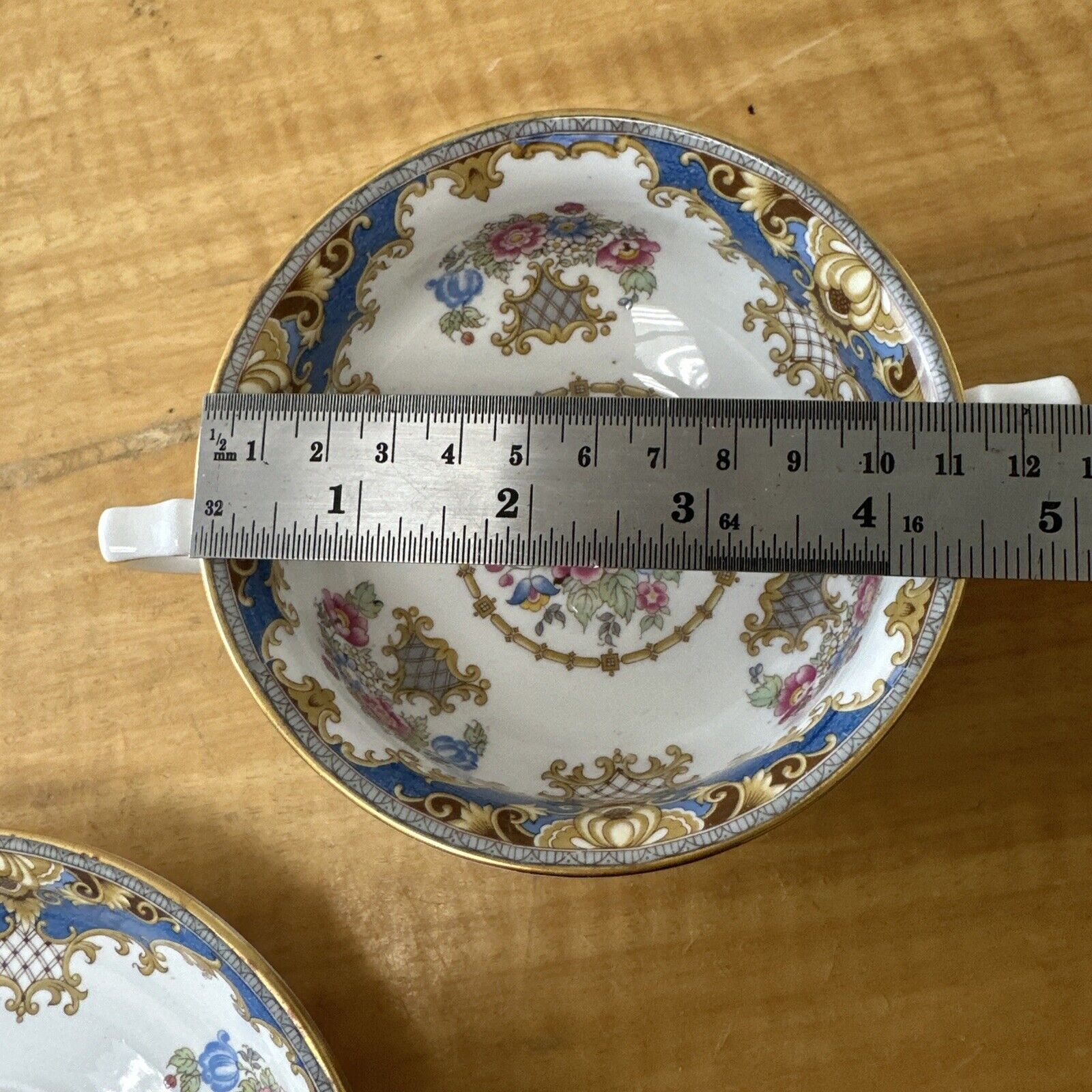 Shelley Sheraton Blue Double Handle Cream Soup Bowls with Saucers