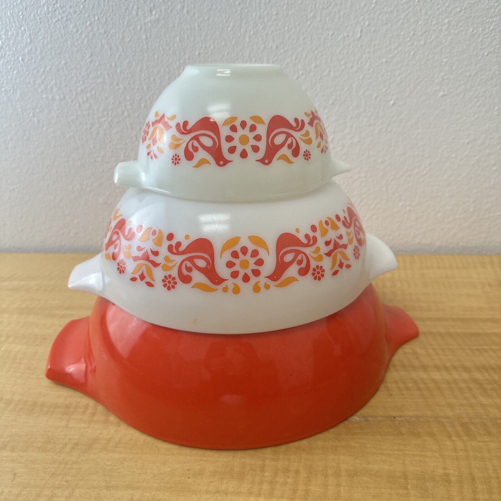 PYREX FRIENDSHIP RED BIRD #441 #443 #444 MIXING BOWLS
