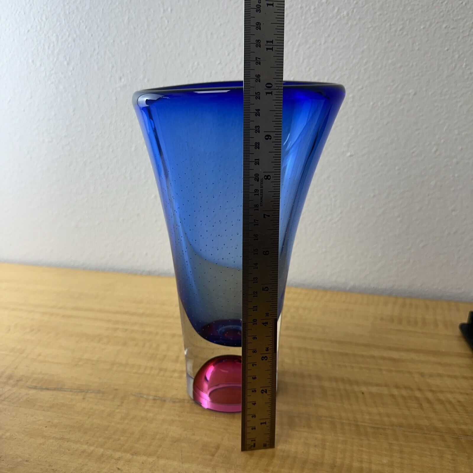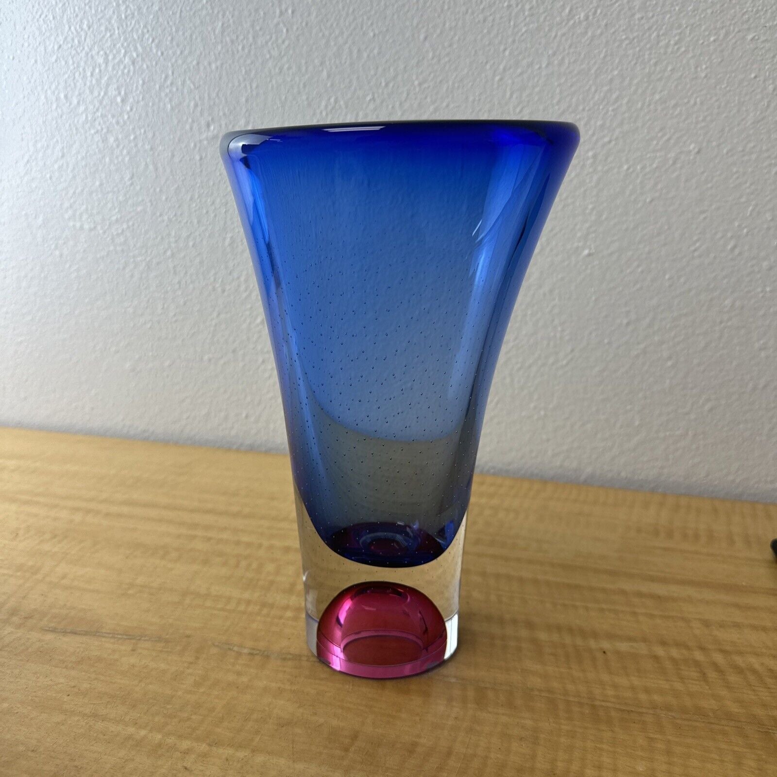 Kosta Boda Blue Glass Vase by Goren Warff, signed and numbered,"zoom" - In BOX