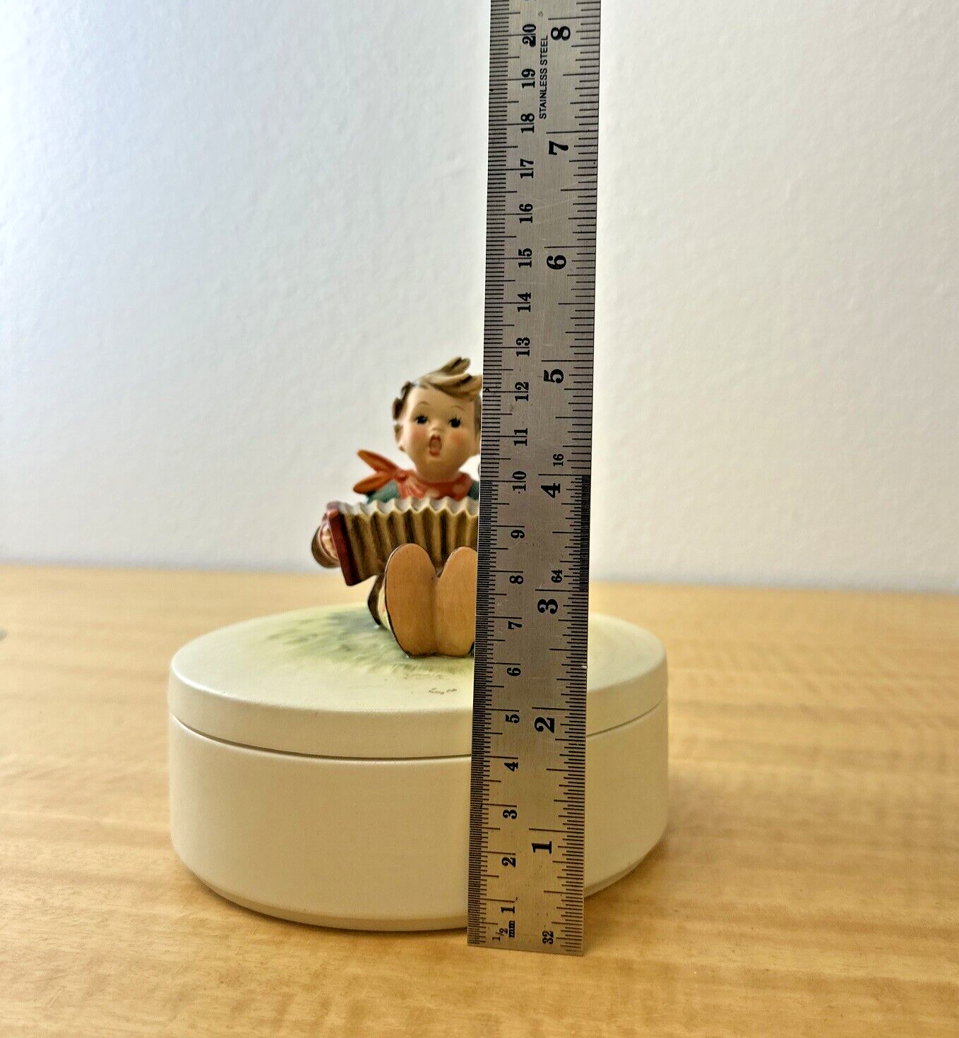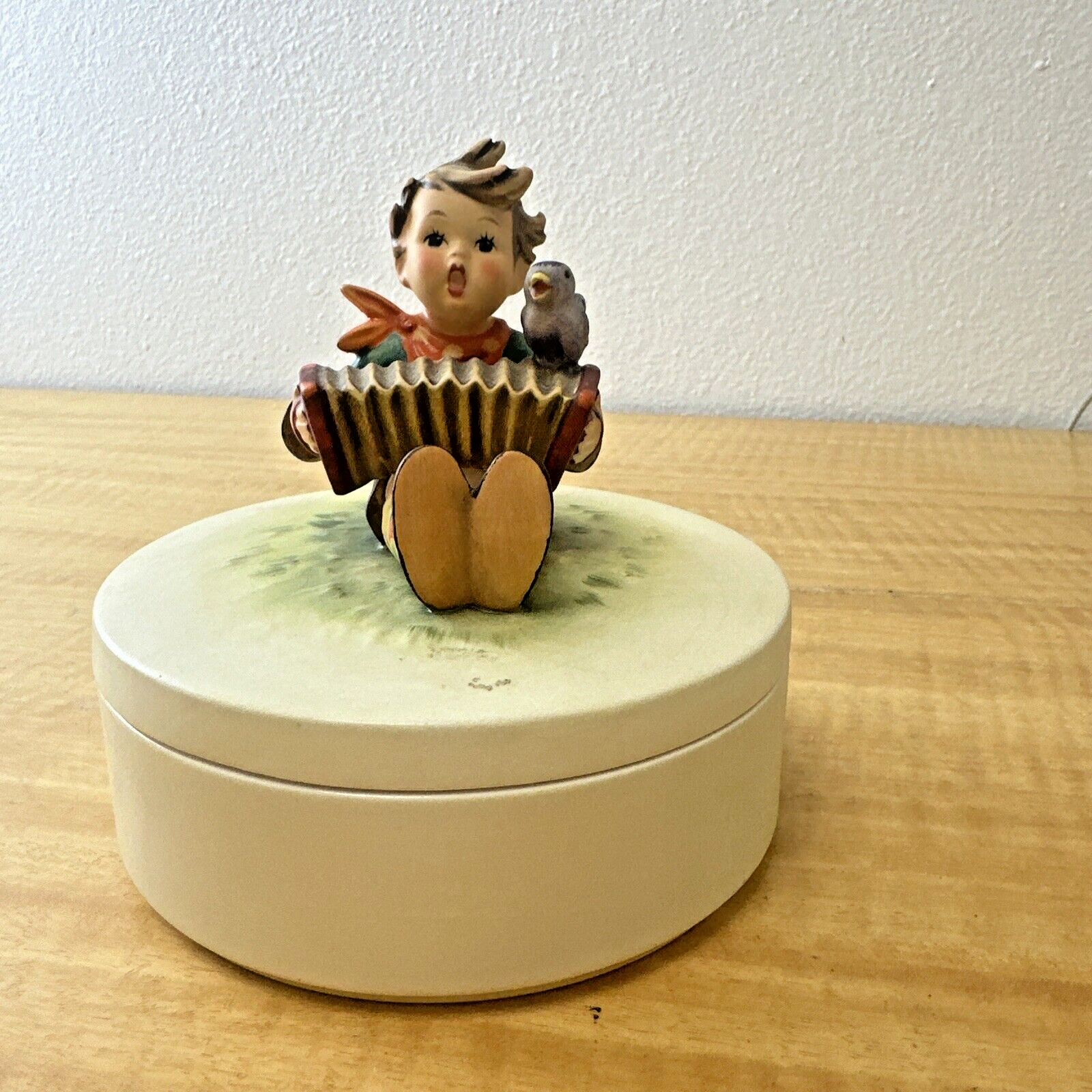 Vintage Goebel MJ Hummel Round Trinket Box Boy Accordion Germany Signed
