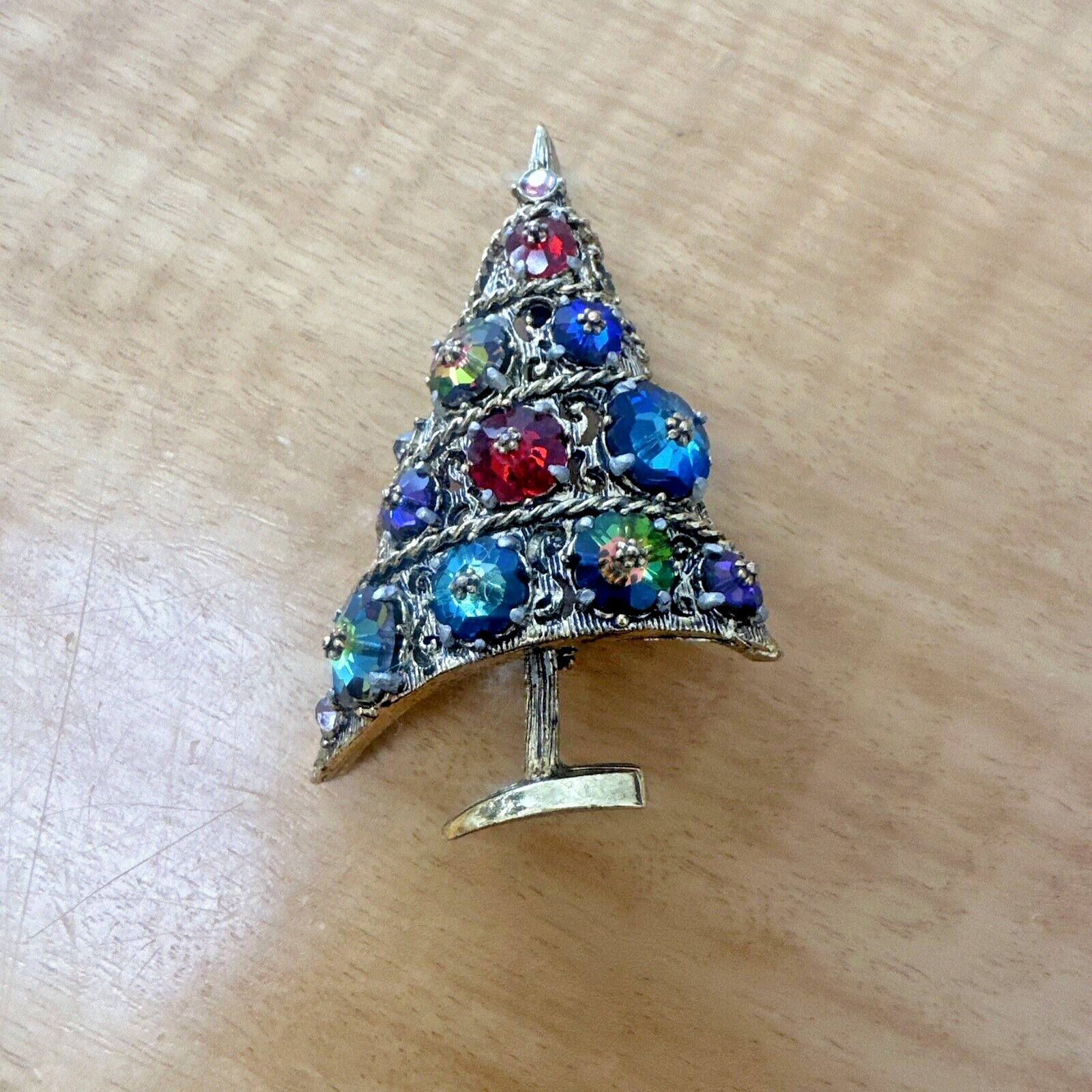 Weiss Sugarplum Rivoli Rhinestones Christmas Tree Brooch RARE 1964