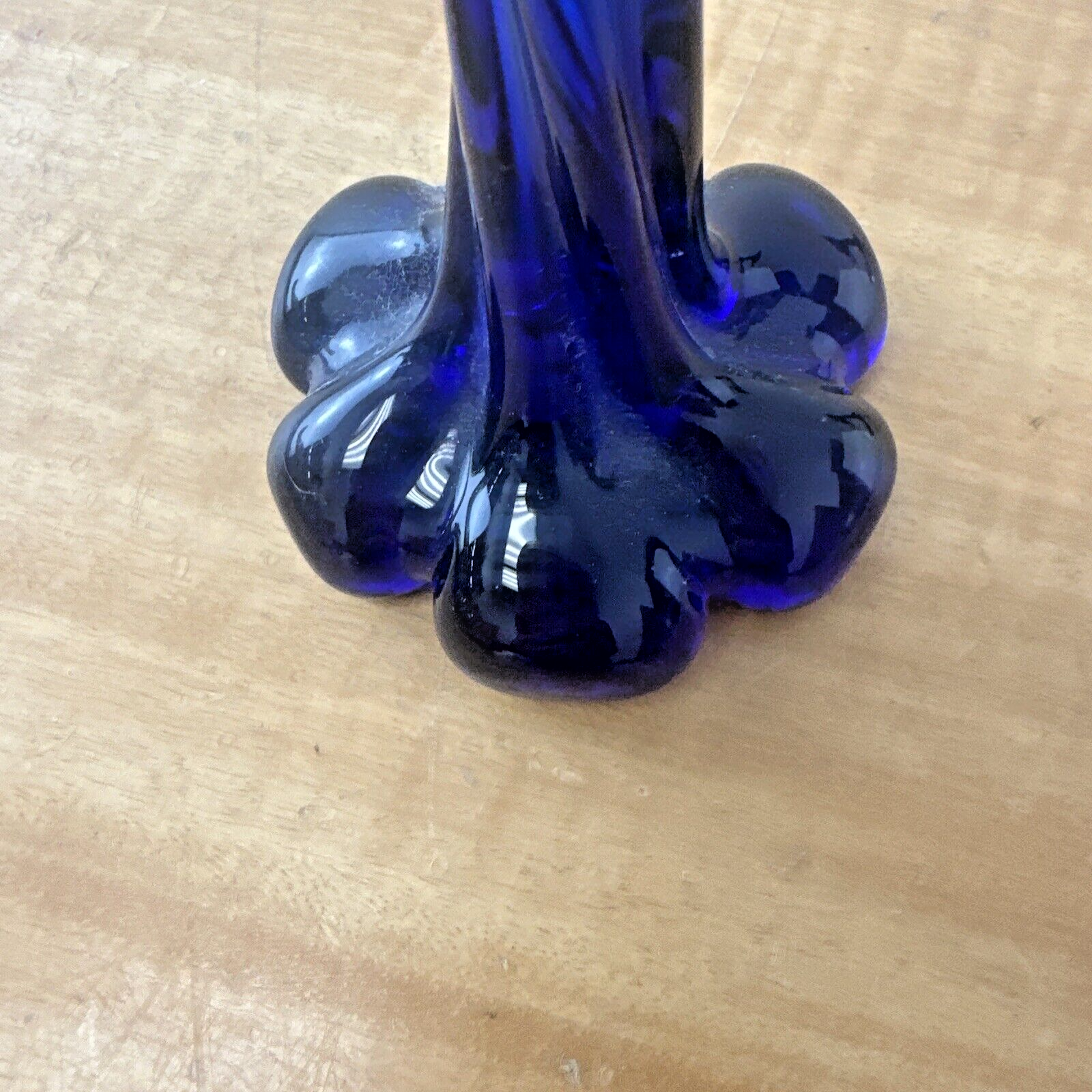 Vintage Art Glass, Cobalt Blue Twisted Glass Vase, Elephant Foot Base