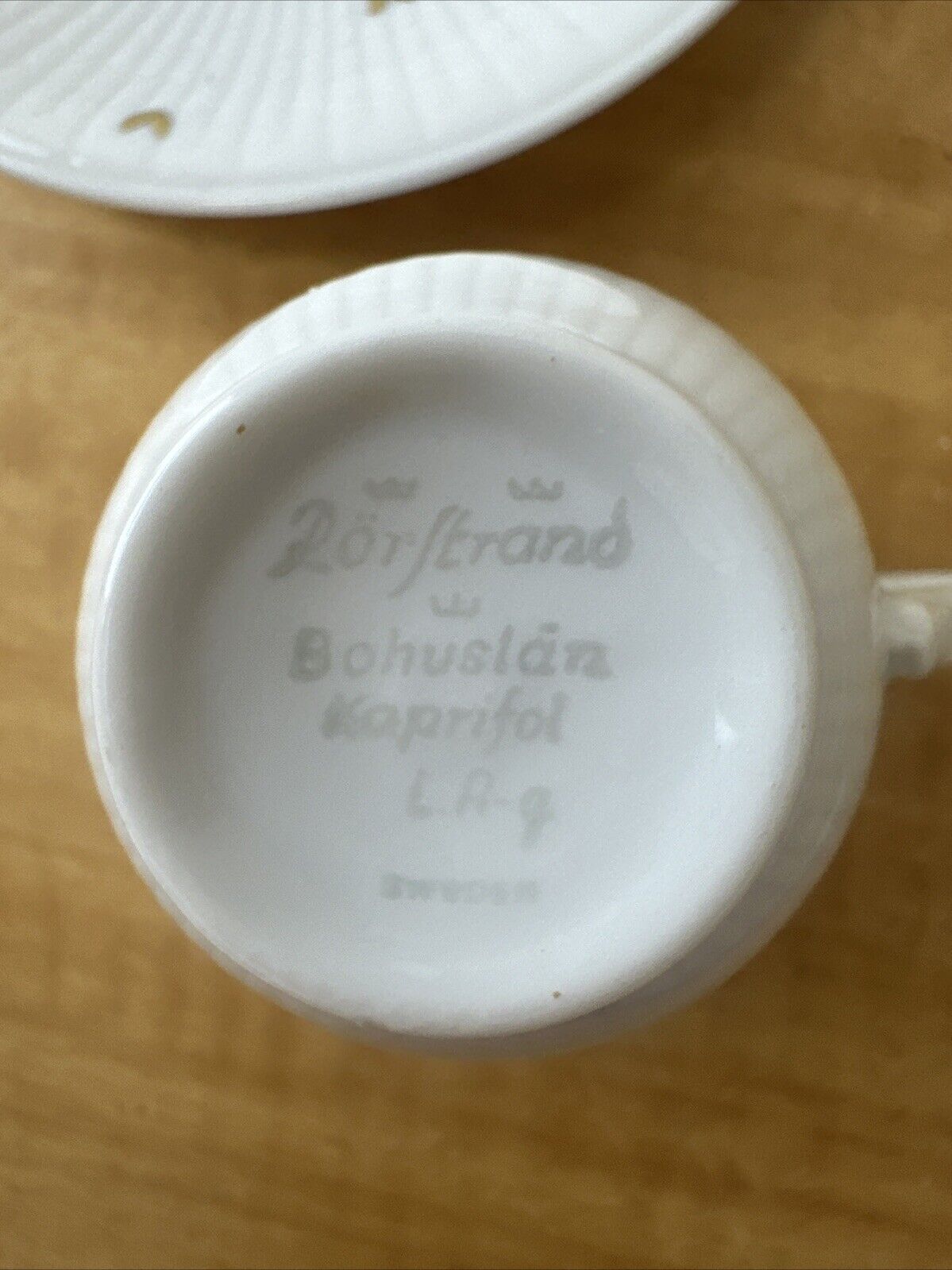 One Sweden Rorstrand Smaland Linnea Gold Rim Floral CoffeeTea Cup and Saucer Set