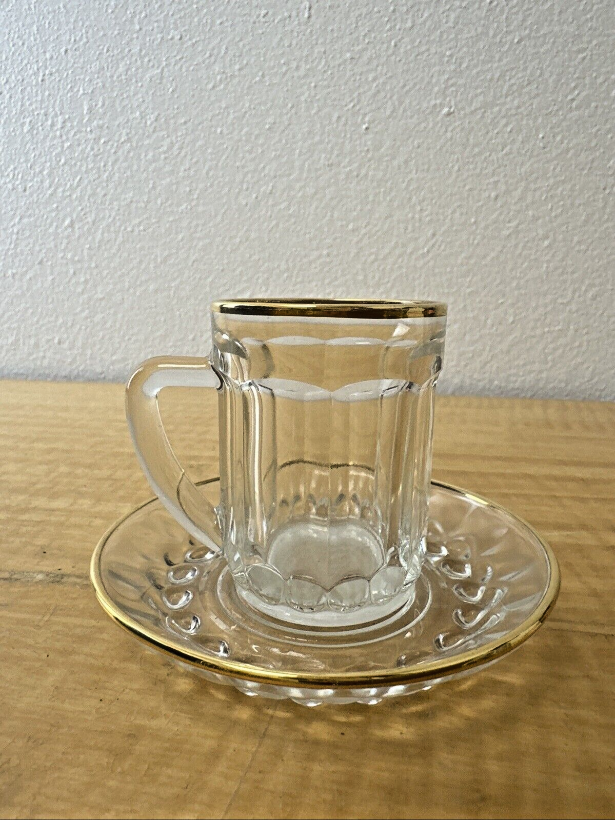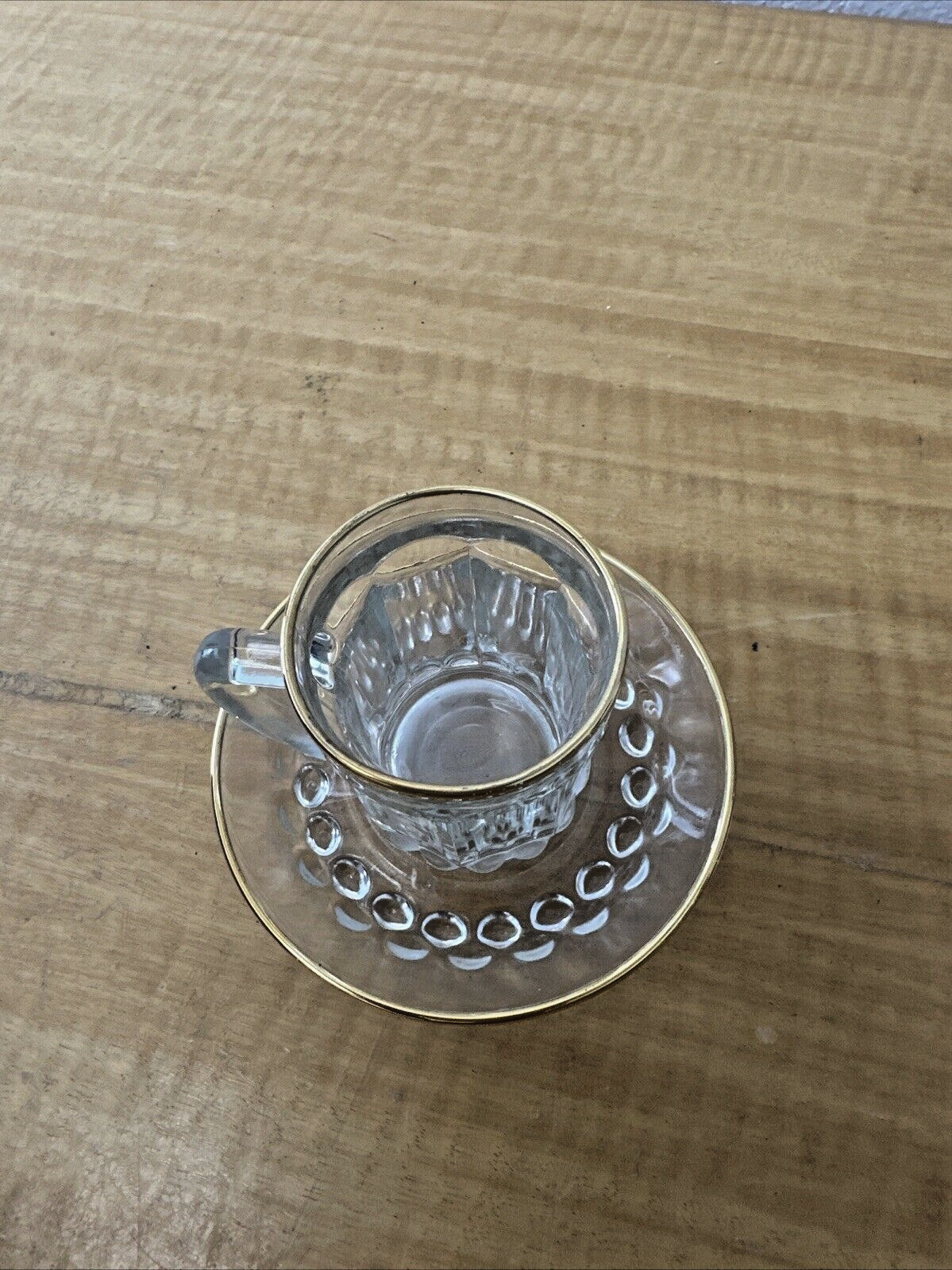 Turkish Coffee Cup with Gold Overlay with Handles 5 Cups 6 Saucers