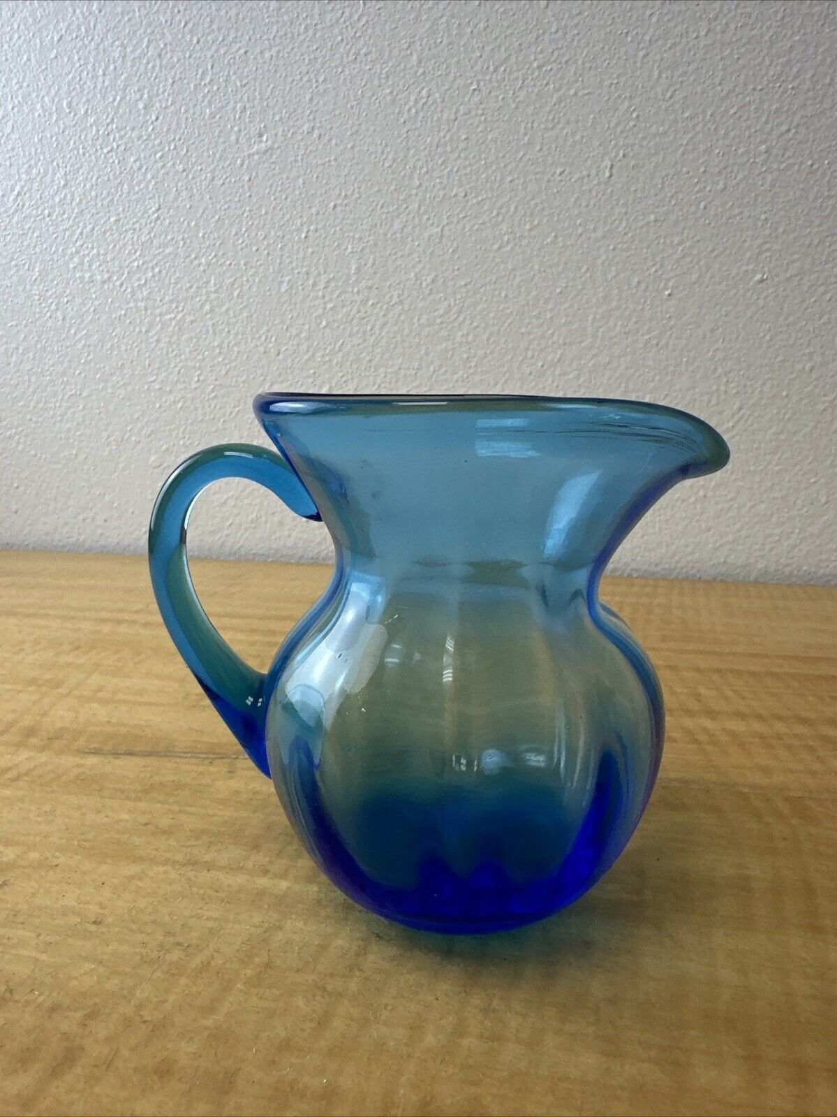 Vintage Hand Blown Blue Glass Pitcher Jug - Art Glass - Applied Handle