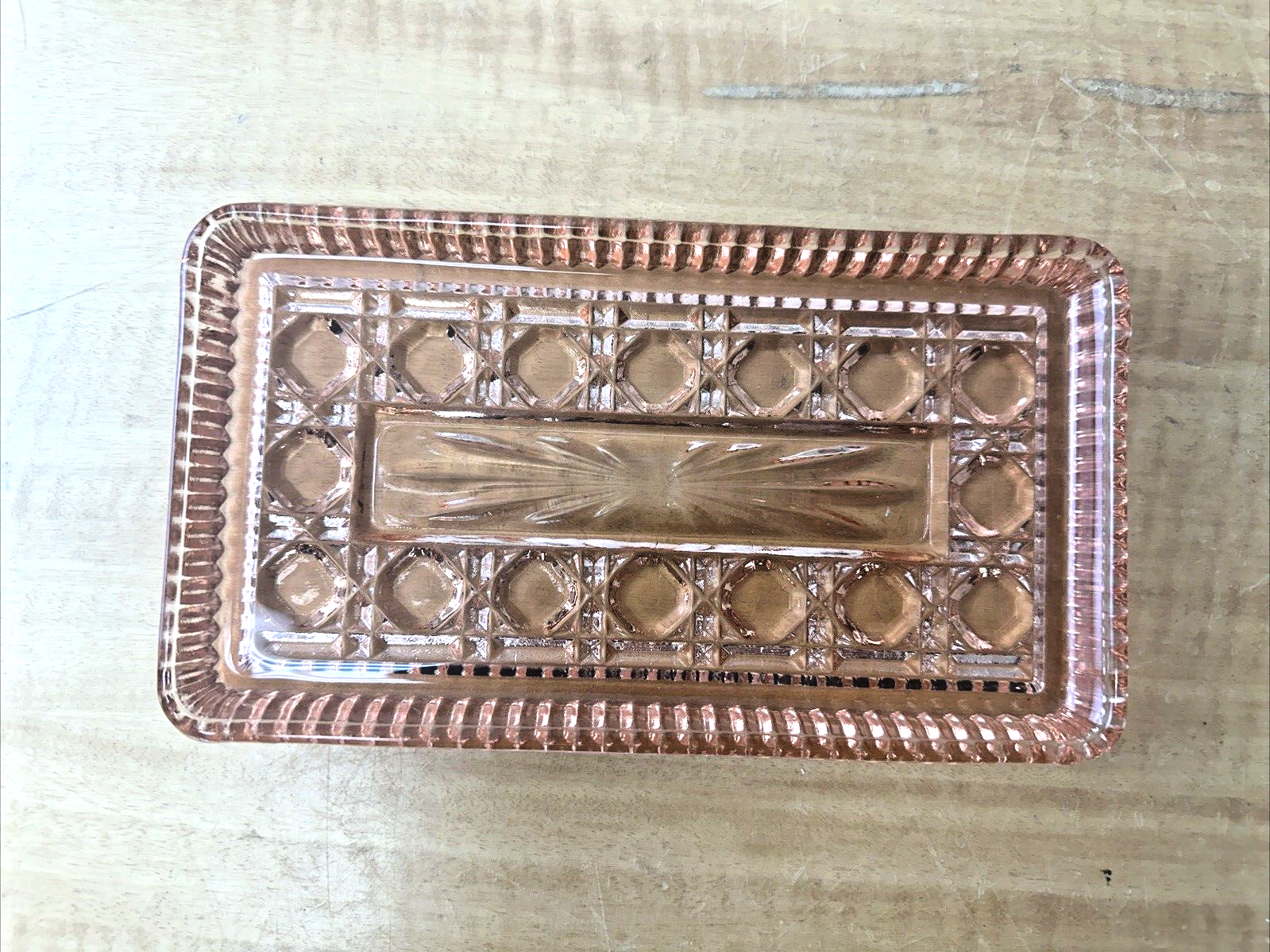 Indiana Glass Peach Ballard Cranberry Tray 4061 8.5x5" Oneida