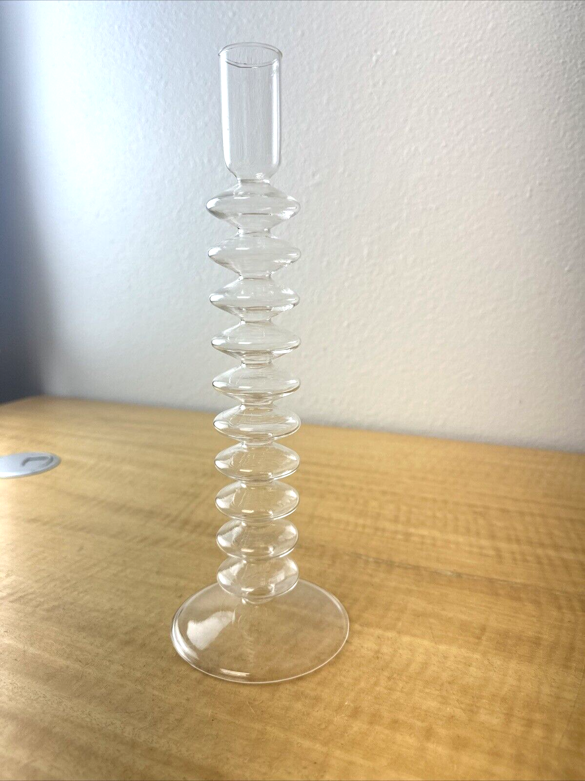 Modern Hand-Blown Quadruple Bubble Hollow Candlesticks 11" Tall 1"W VTG