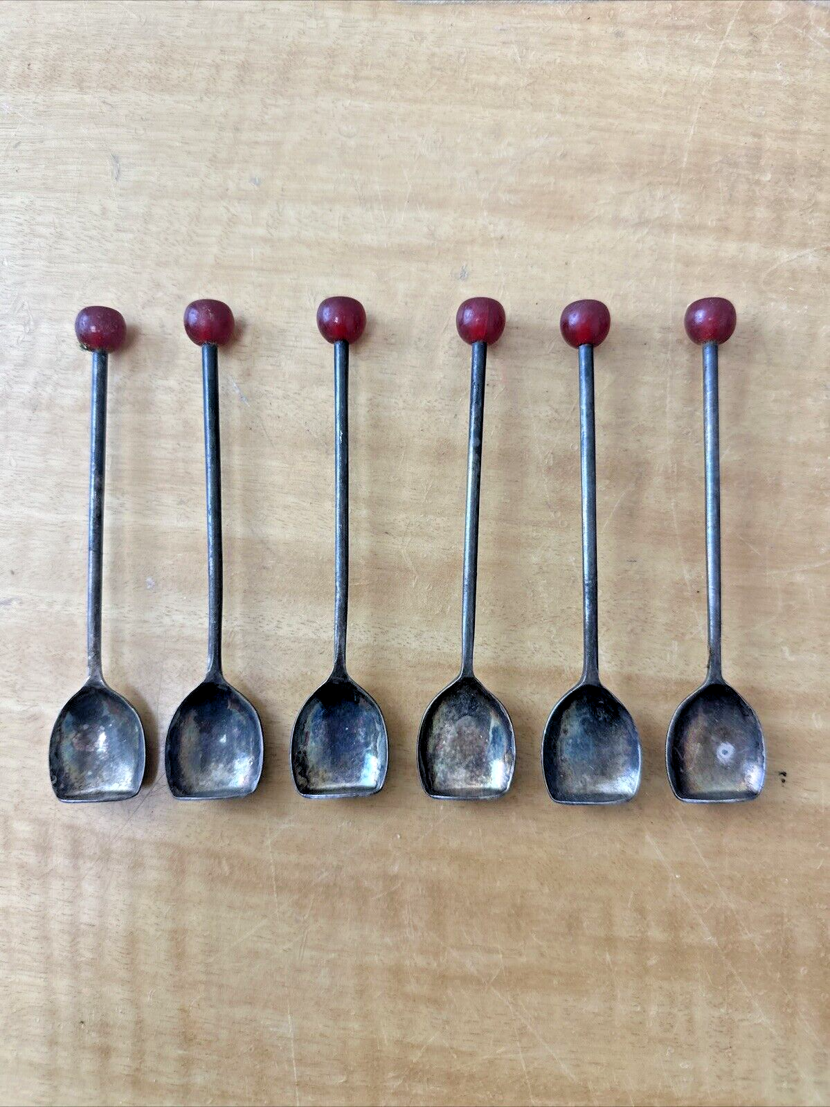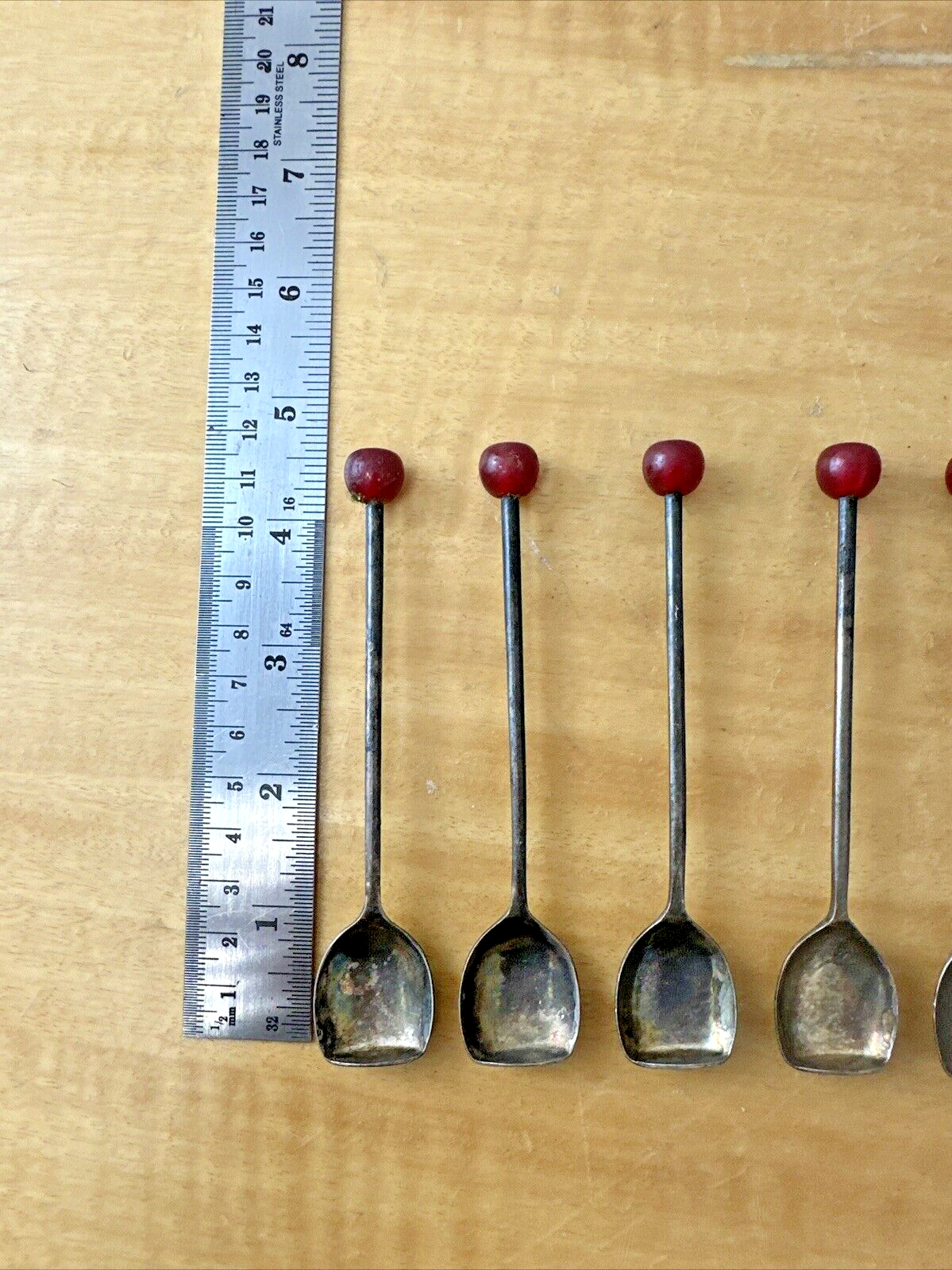 6 England EPNS Cocktail Muddler Spoons with Bakelite "Cherry" Handles