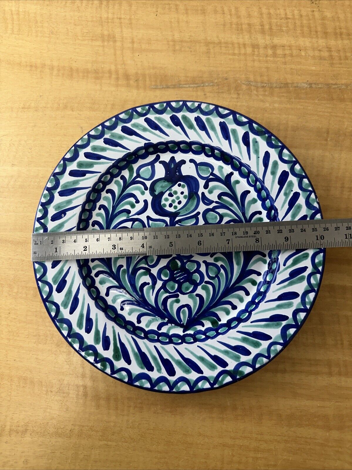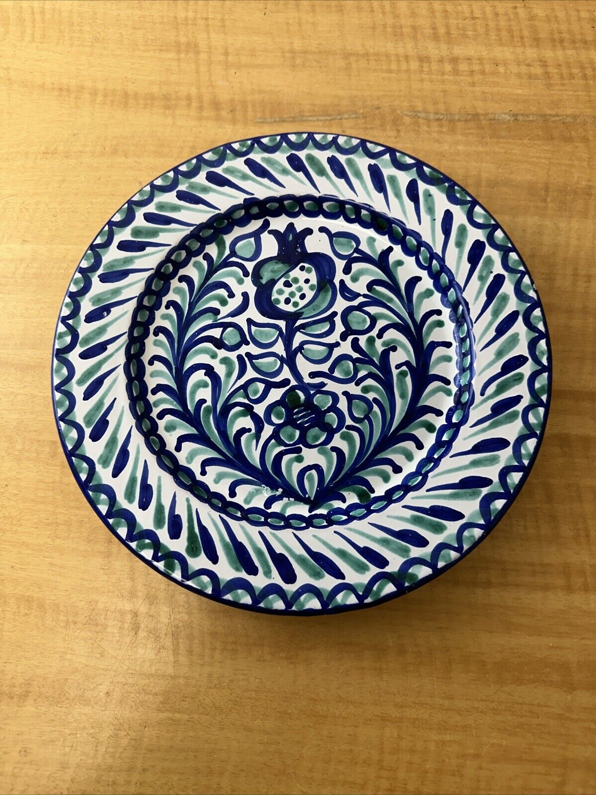 Vintage Fajalauza Hand-Painted Blue Green Wall Plate Glazed Pottery Floral 10in