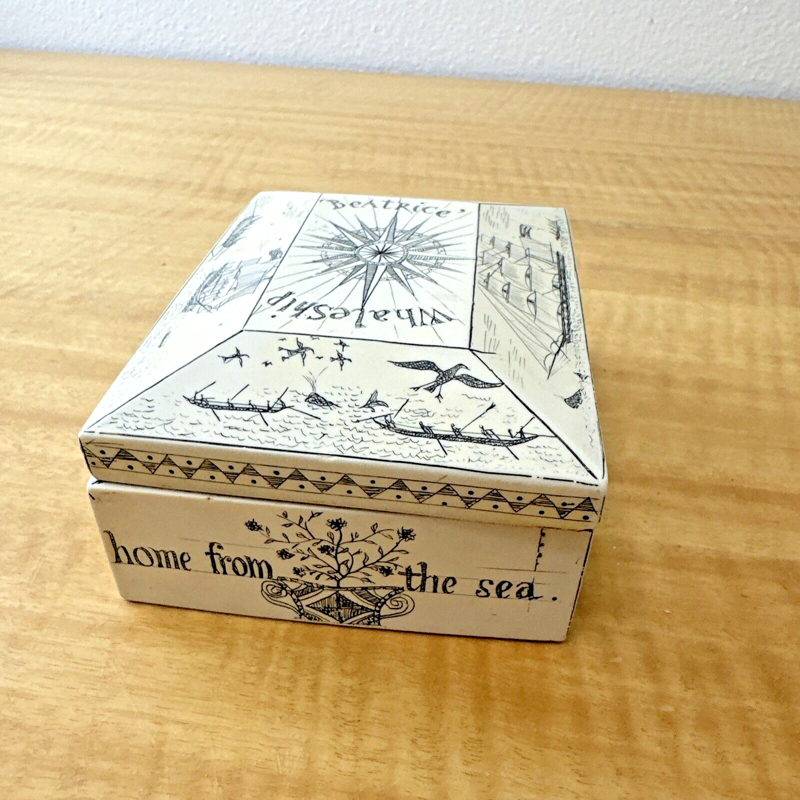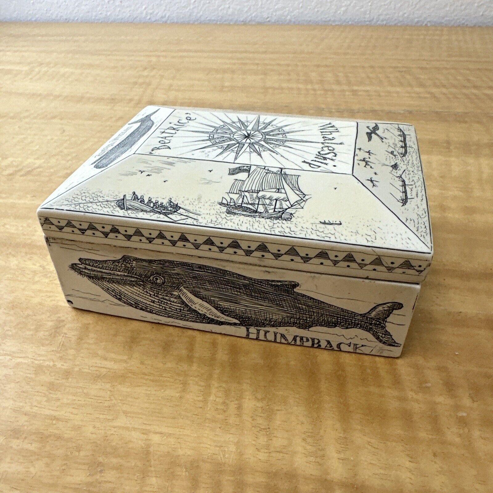 Vintage Scrimshaw Beatrice Whaleship Trinket Jewelry Box Made In England