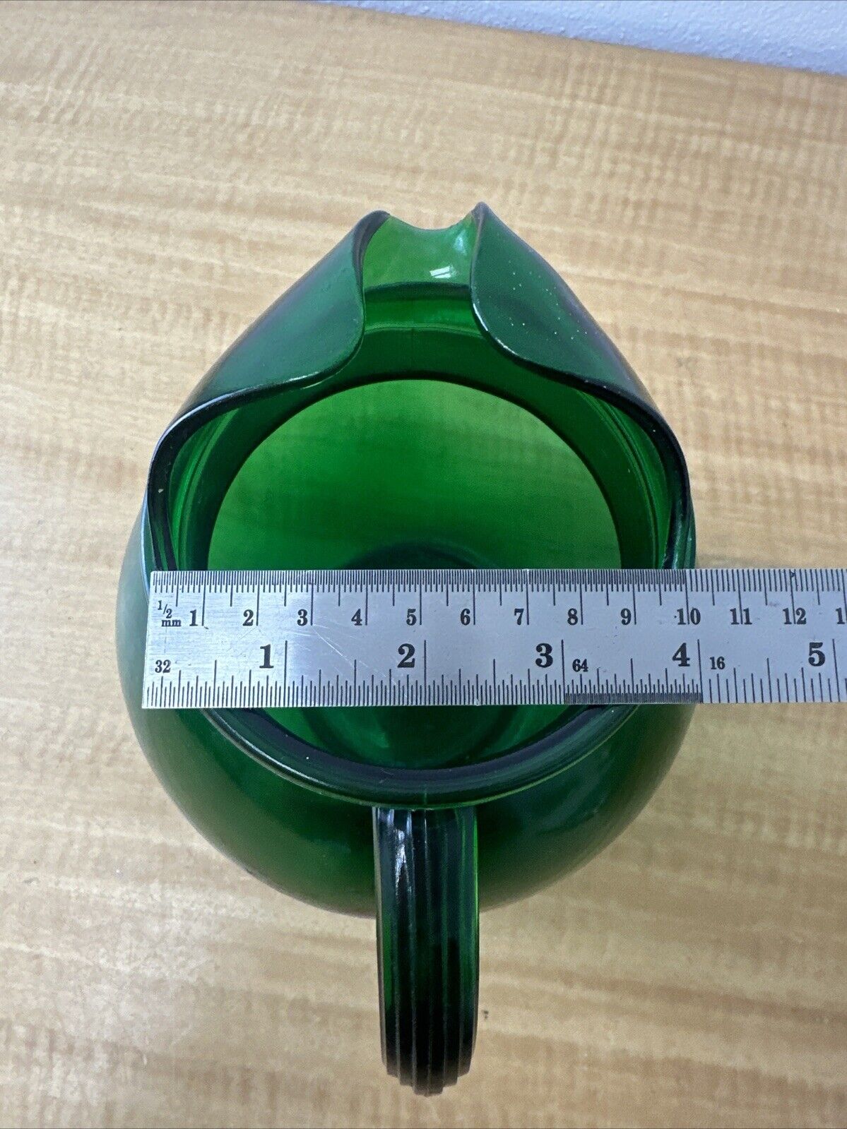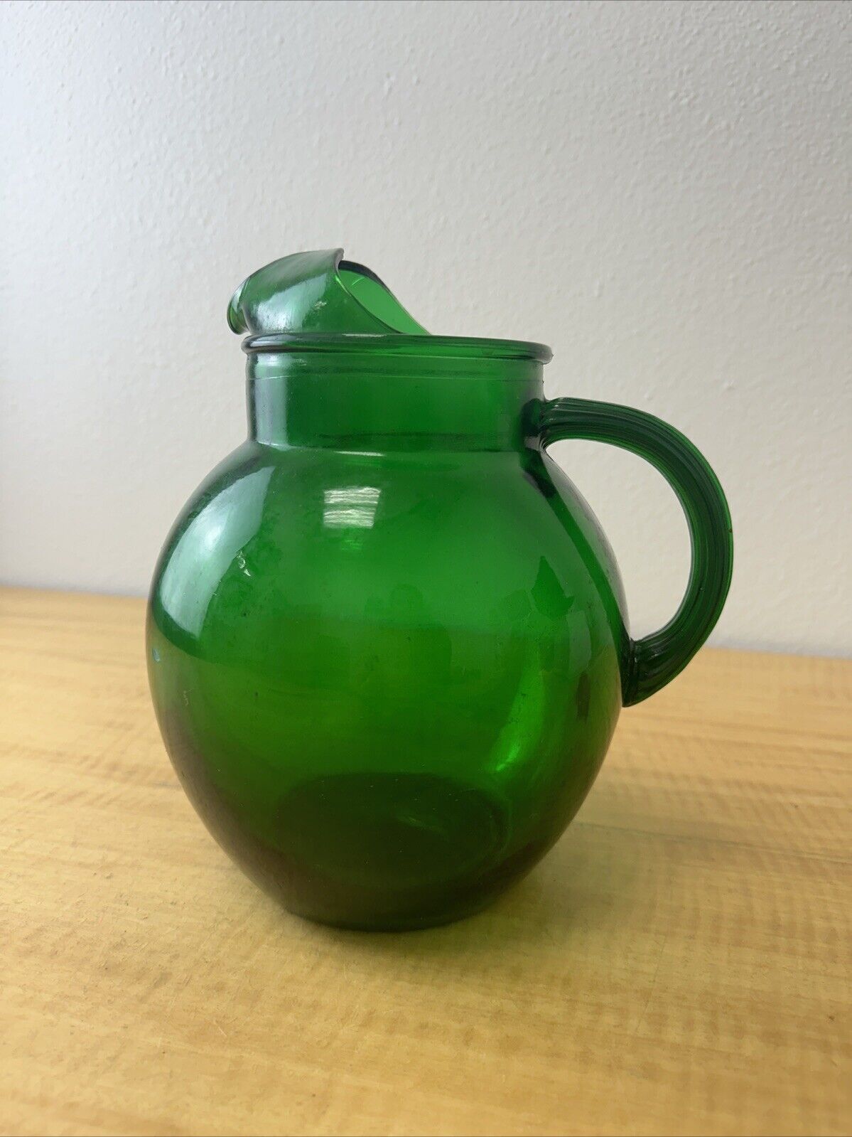 Large emerald green crown corning glass water pitcher ball balloon style ice lip