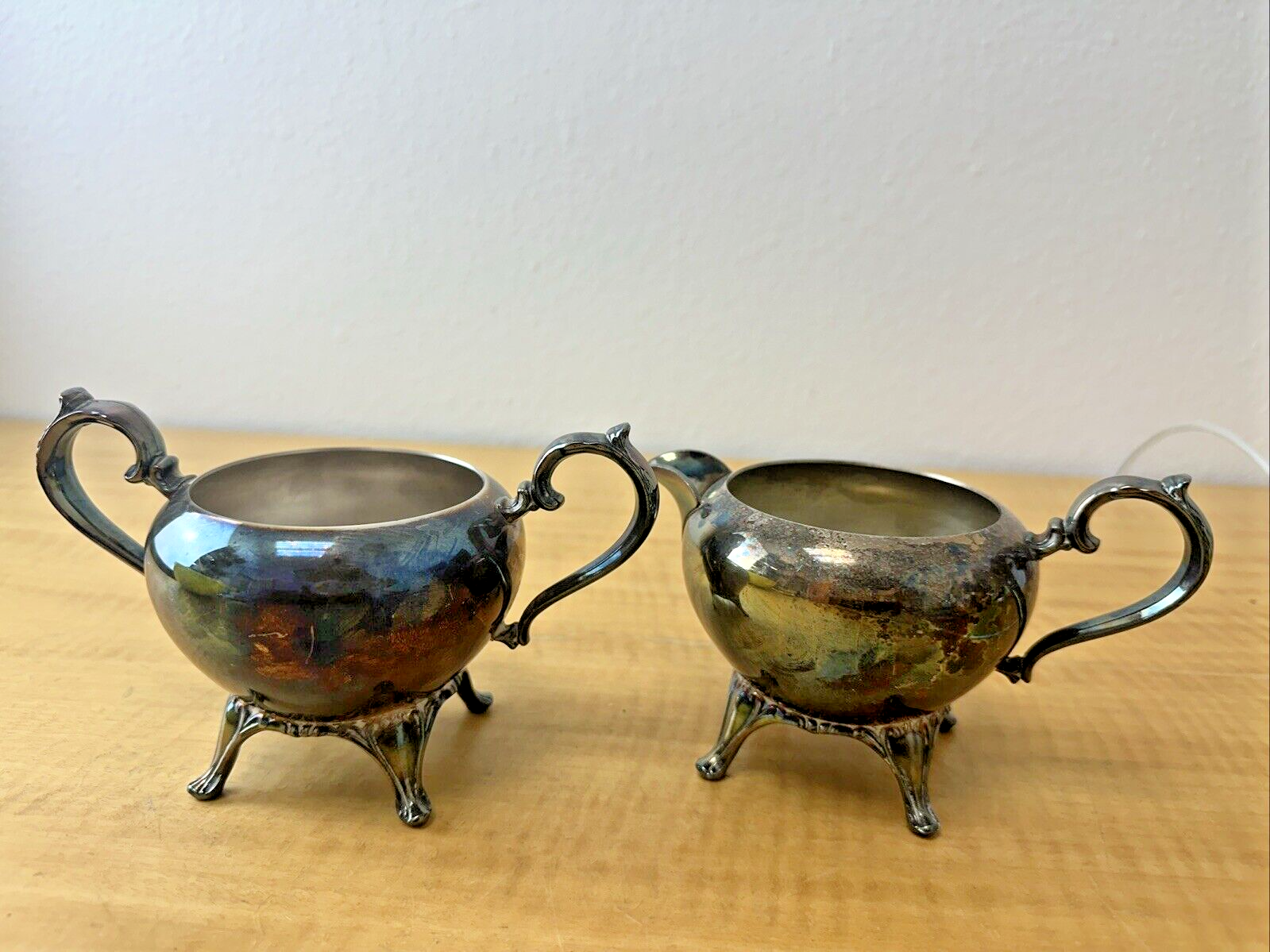 CREAM & SUGAR FOOTED WM. A ROGERS SILVER PLATE